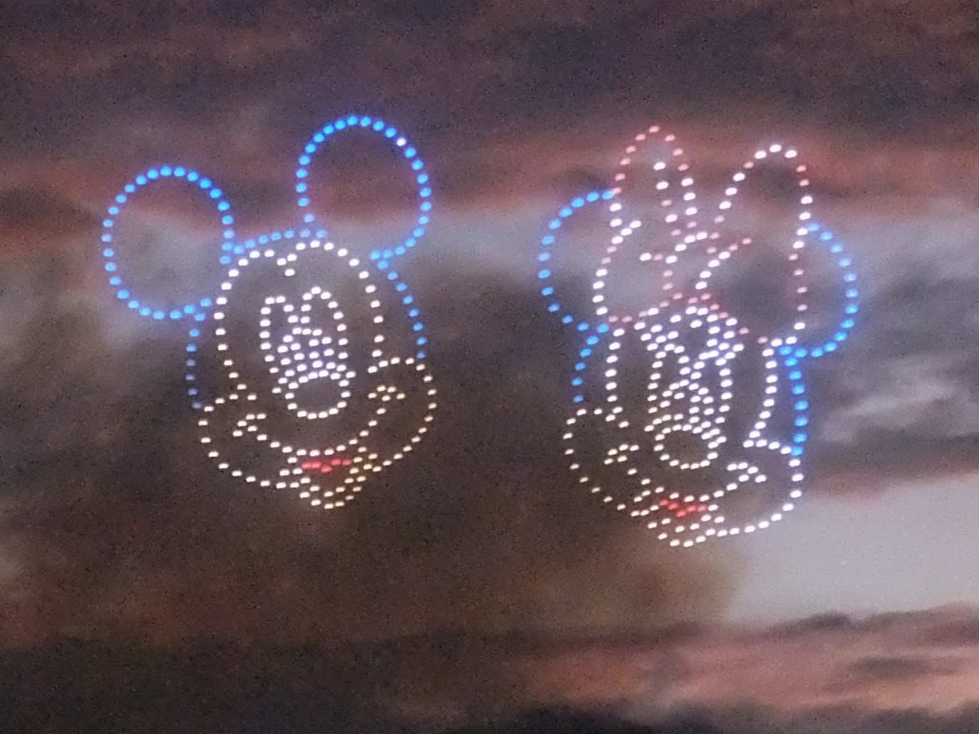 大音量のディズニーミュージックと共にキャラクター達が空を舞います。