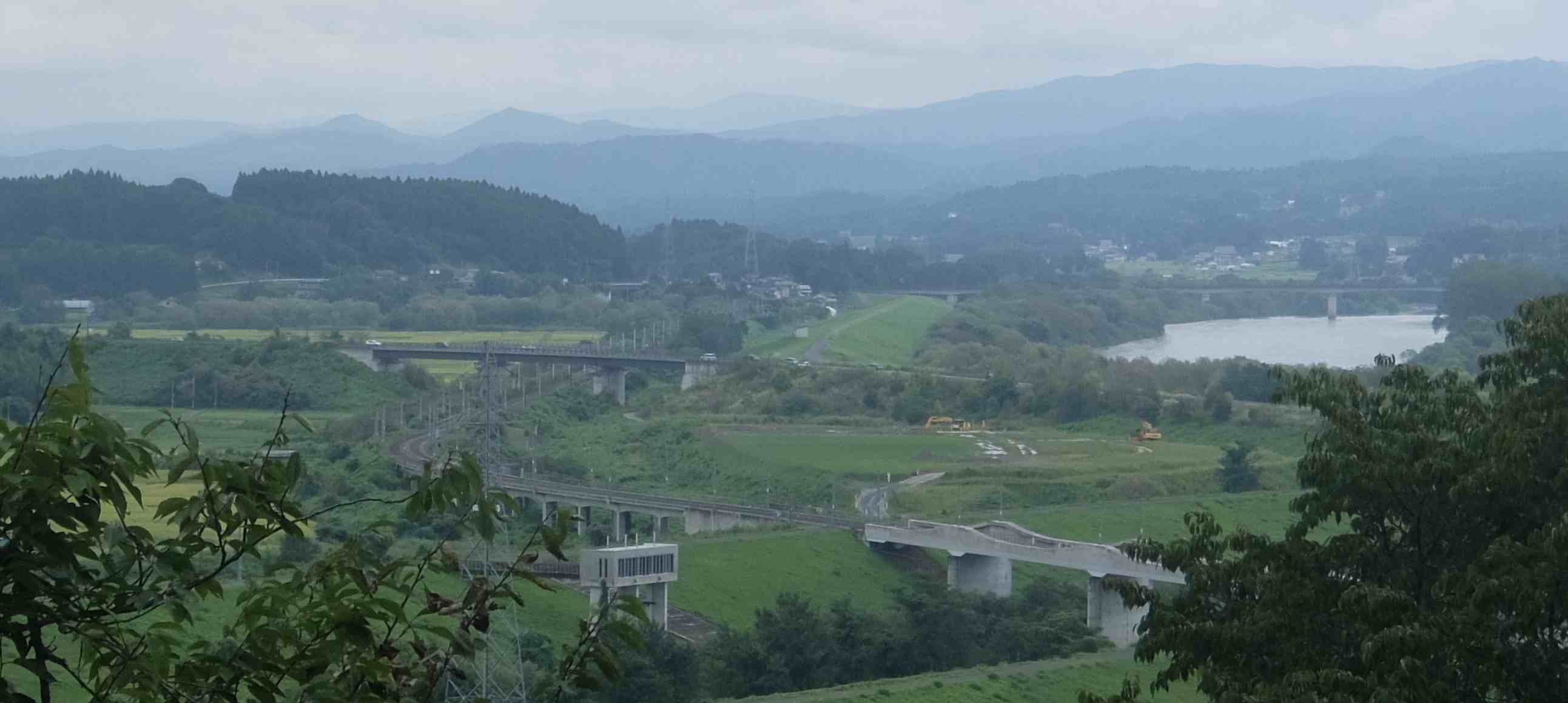 最上川、国道4号、東北本線が見えます。