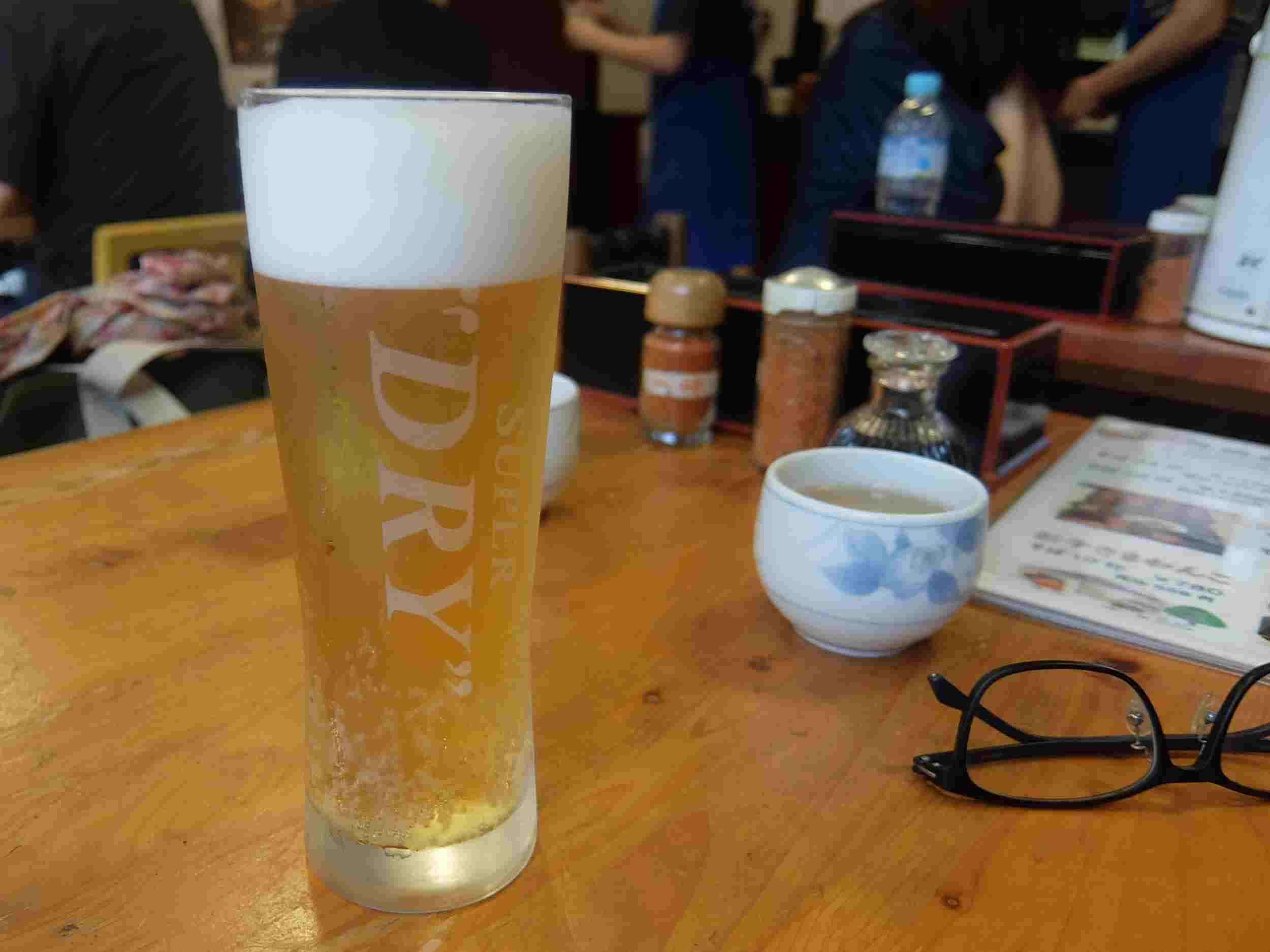 たくさん歩いたのでさっそくの”生ビール”