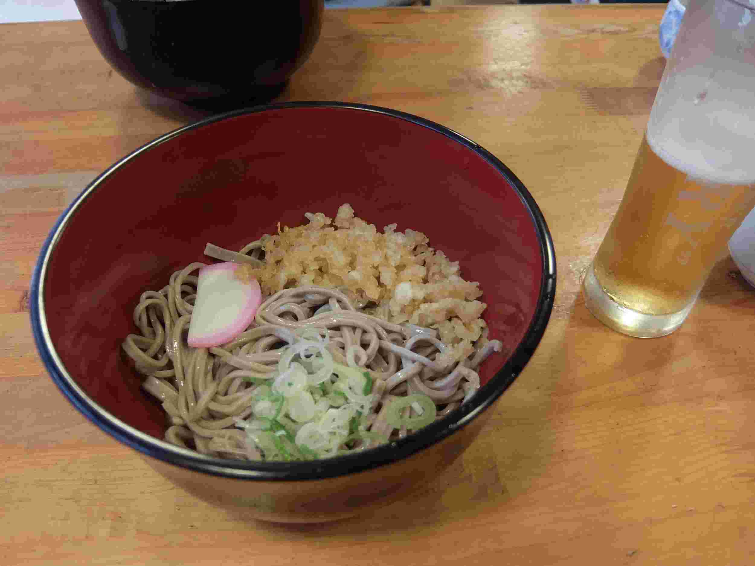 ビールを頼んで、お蕎麦はたぬき蕎麦の冷たいのを頂きました。
