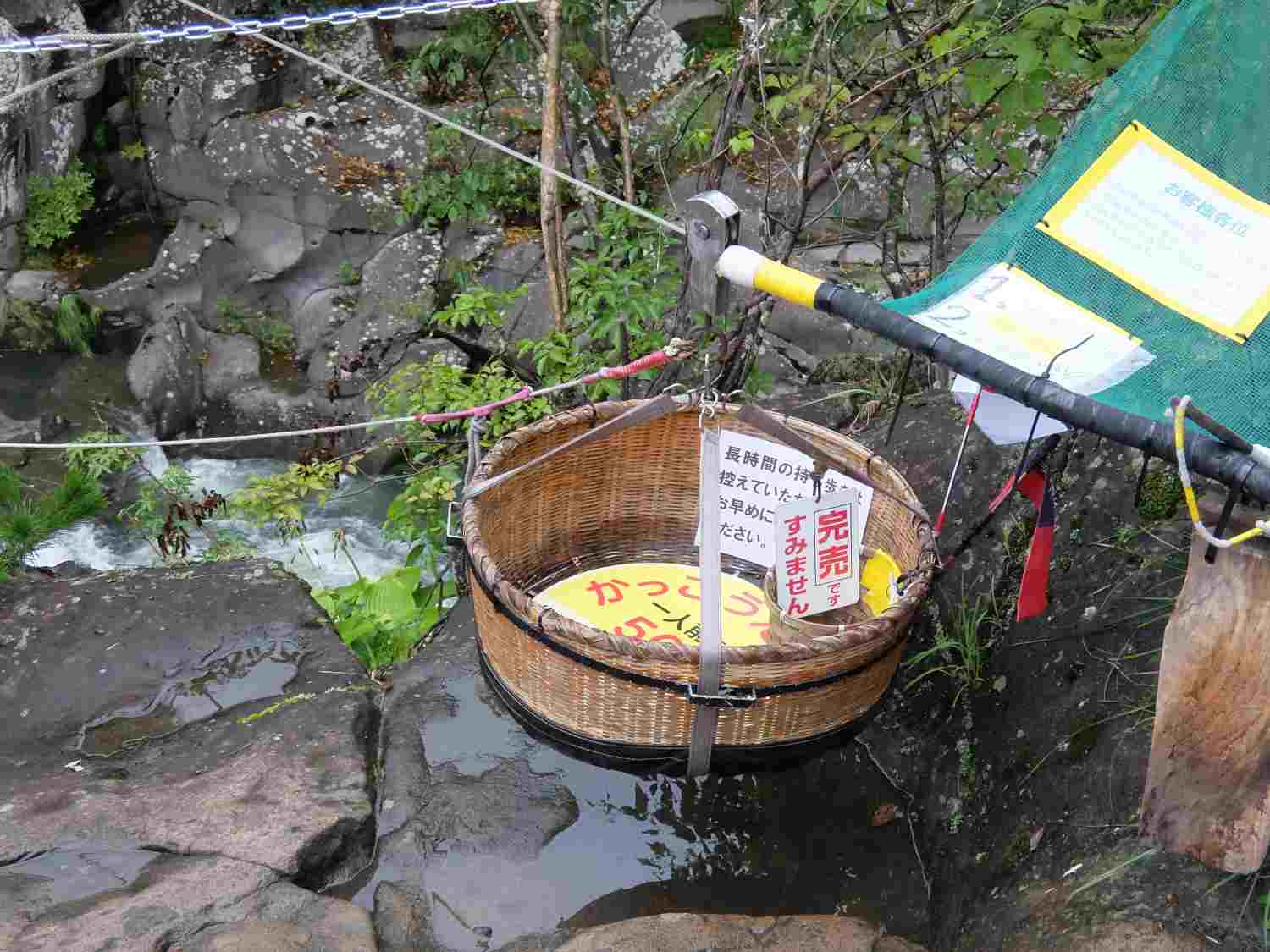 対岸のお店からロープを伝っておだんごが運ばれてくるのだそうですが「完売」でした。