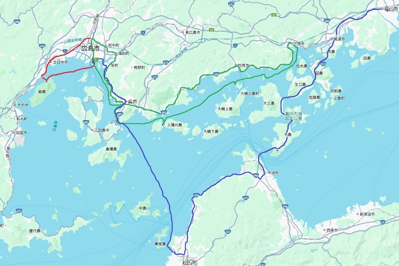 生口橋 、 因島大橋 、 新尾道大橋 と渡りまして