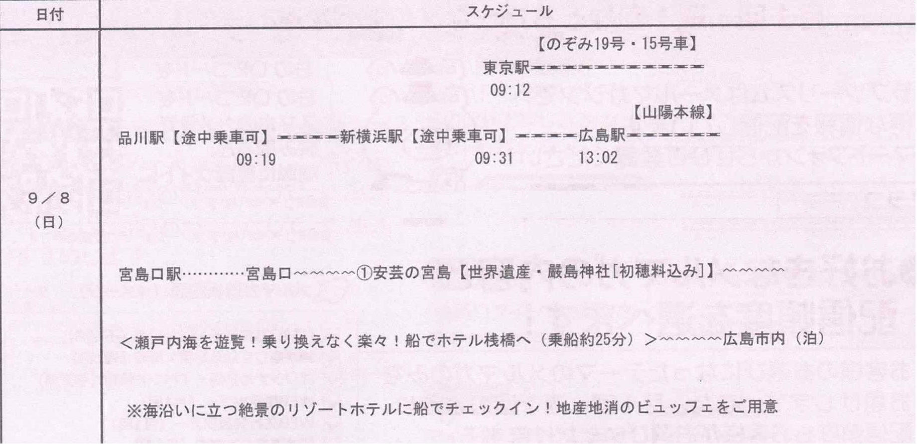 赤:1日目 新幹線で広島に到着してから安芸の宮島・厳島神社を参拝してホテルへ