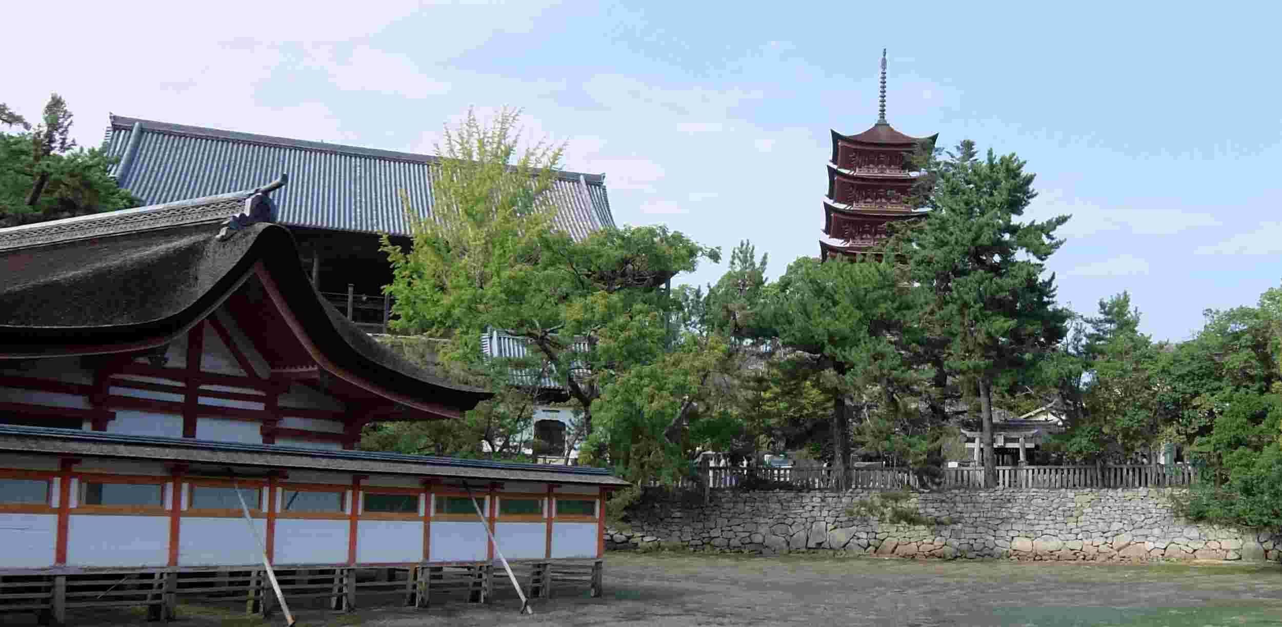 厳島神社参拝後、前回は良く解らずに周らなかった五重塔と千畳閣へ