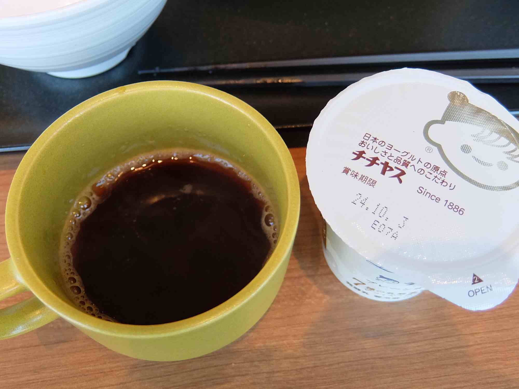 食後にいただいたコーヒーと ”チチヤスのヨーグルト”