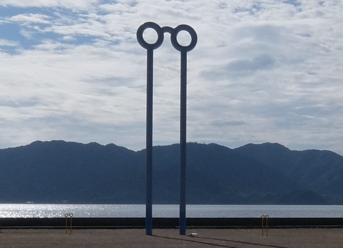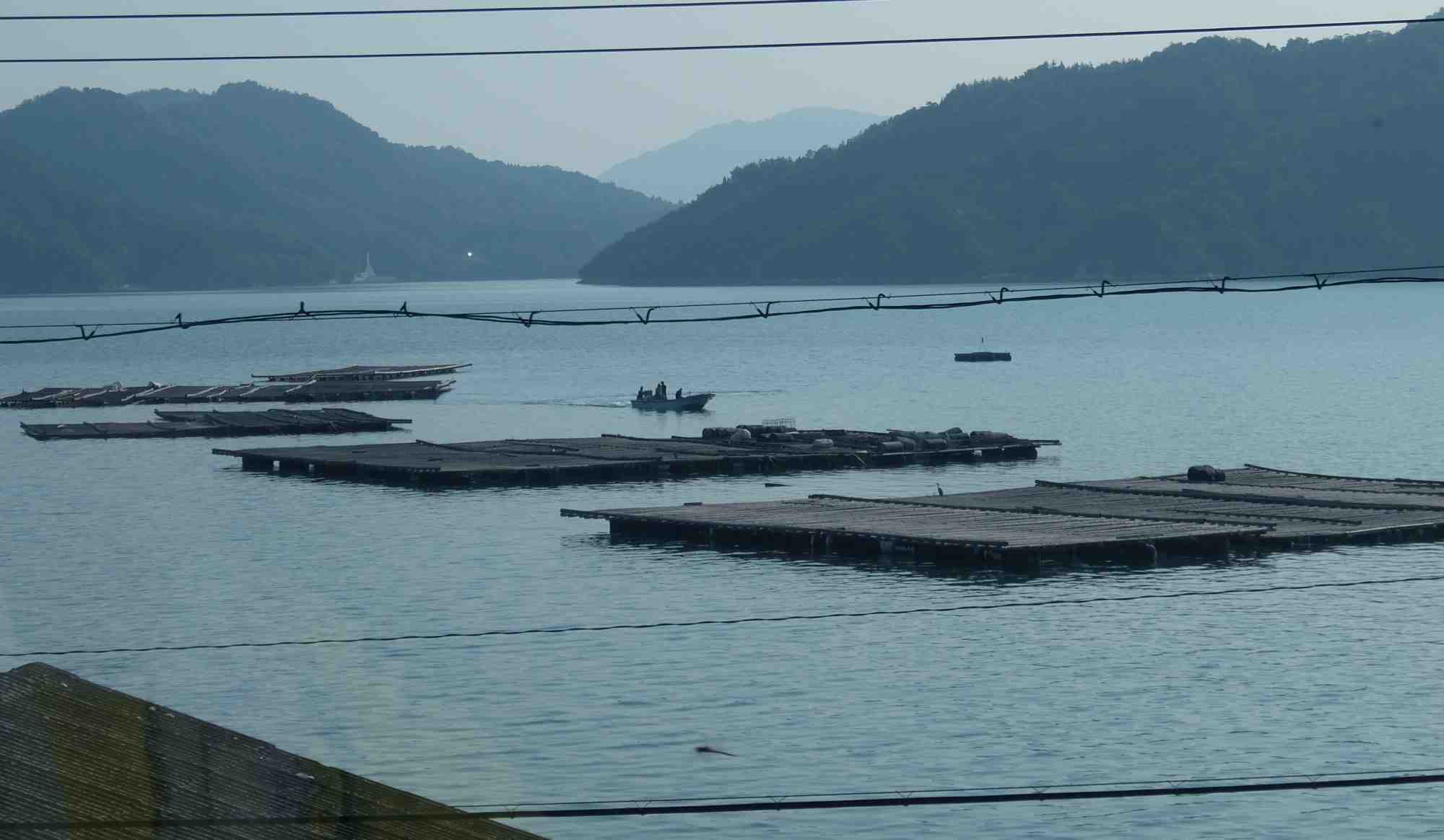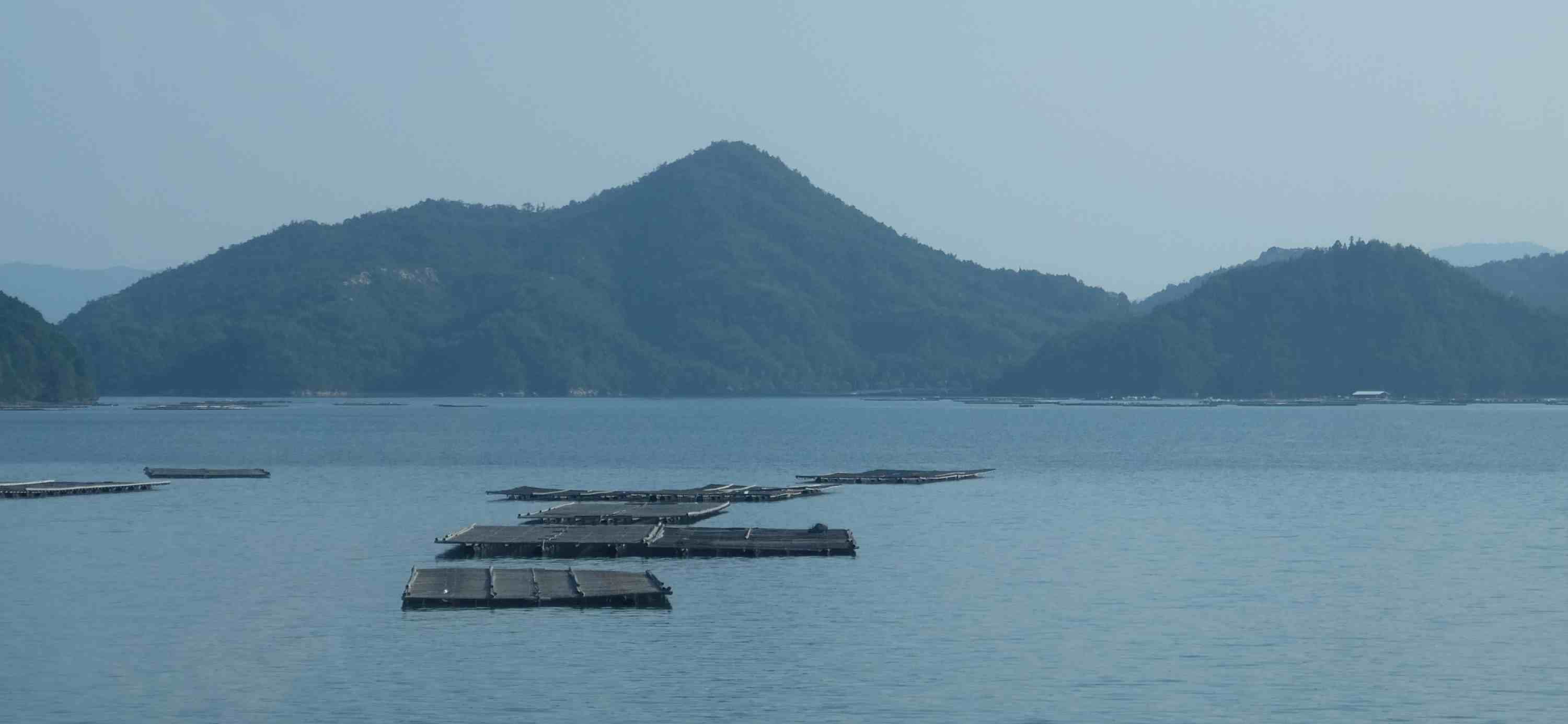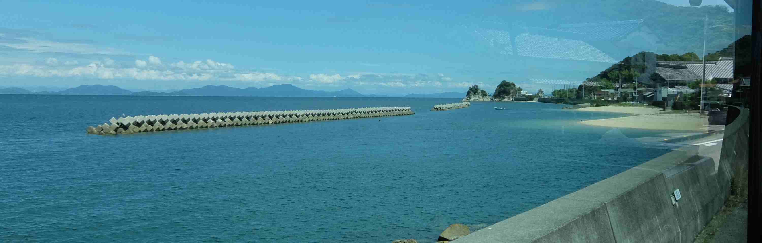 電車の車窓からは瀬戸内海に浮かぶ牡蠣のいかだがたくさんみえます