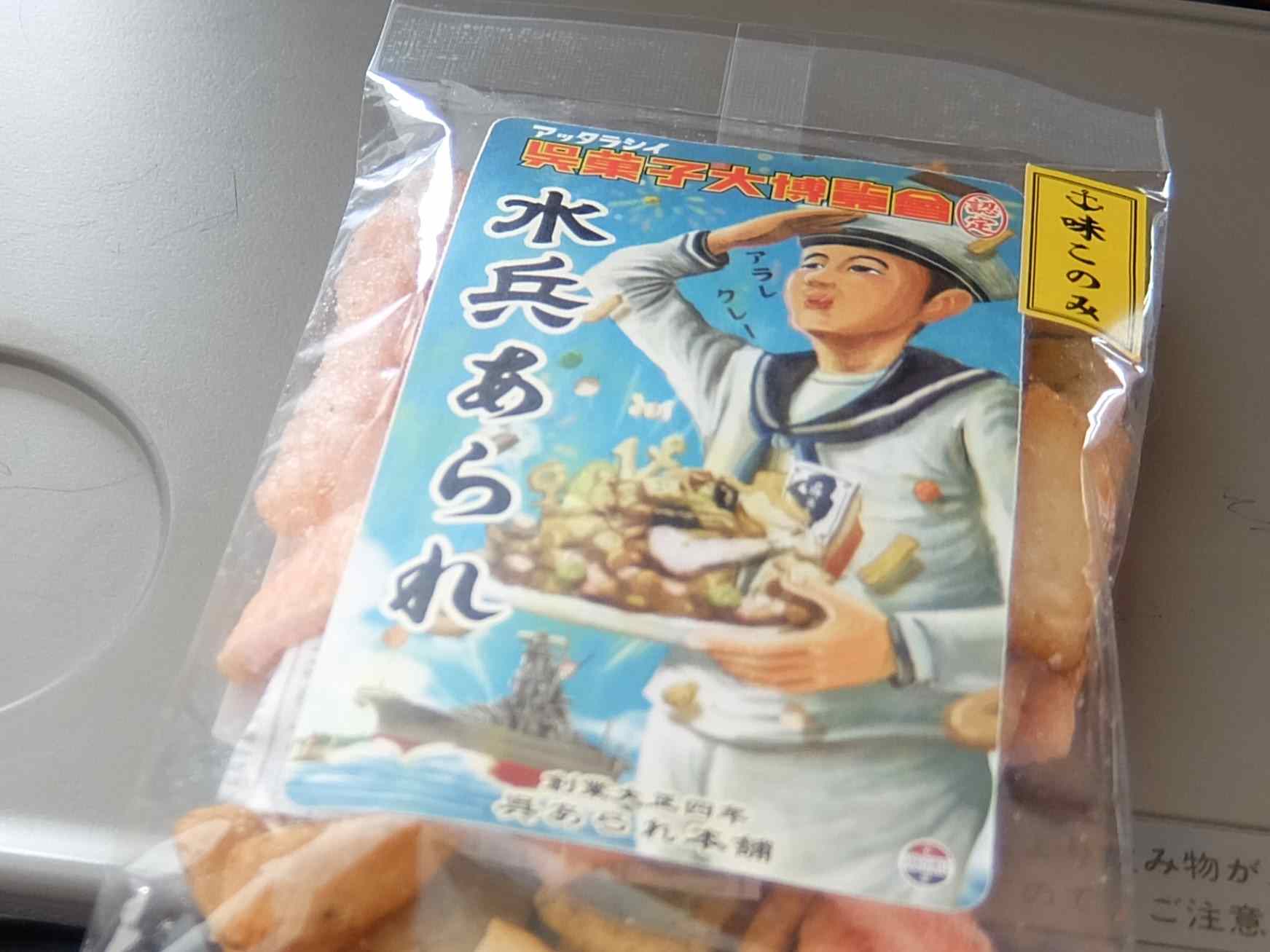 船旅のお供、「水兵あられ」(妻が呉港売店で購入してきた)