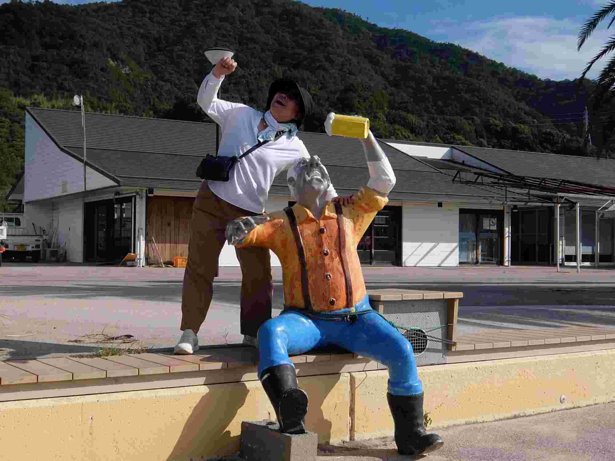 下蒲刈島の船着き場でおばちゃんが売っていたタコのおつまみをいただく