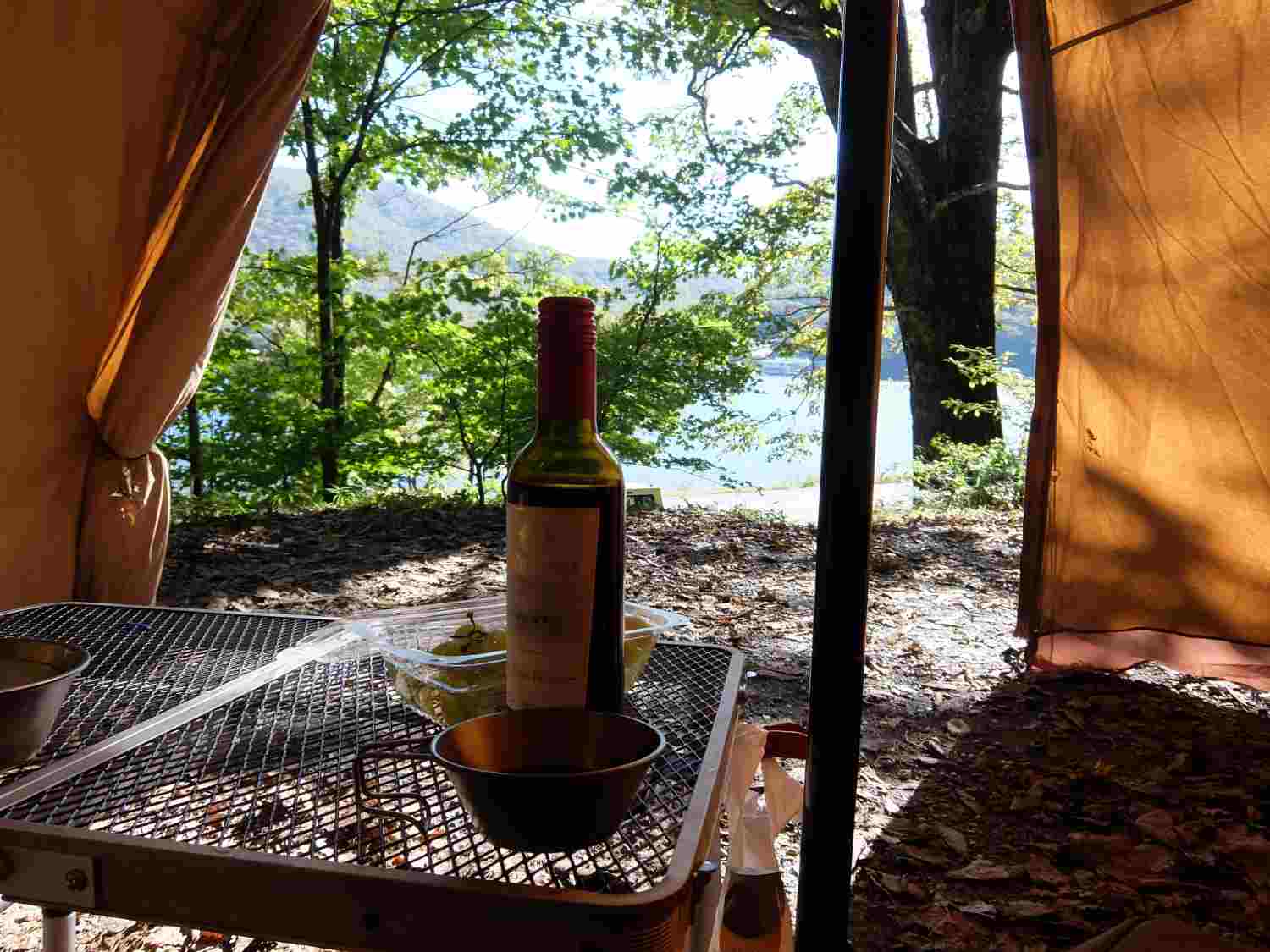 昼食を終えてゆっくり設営 設営後はワインを空けてまったりしていました。