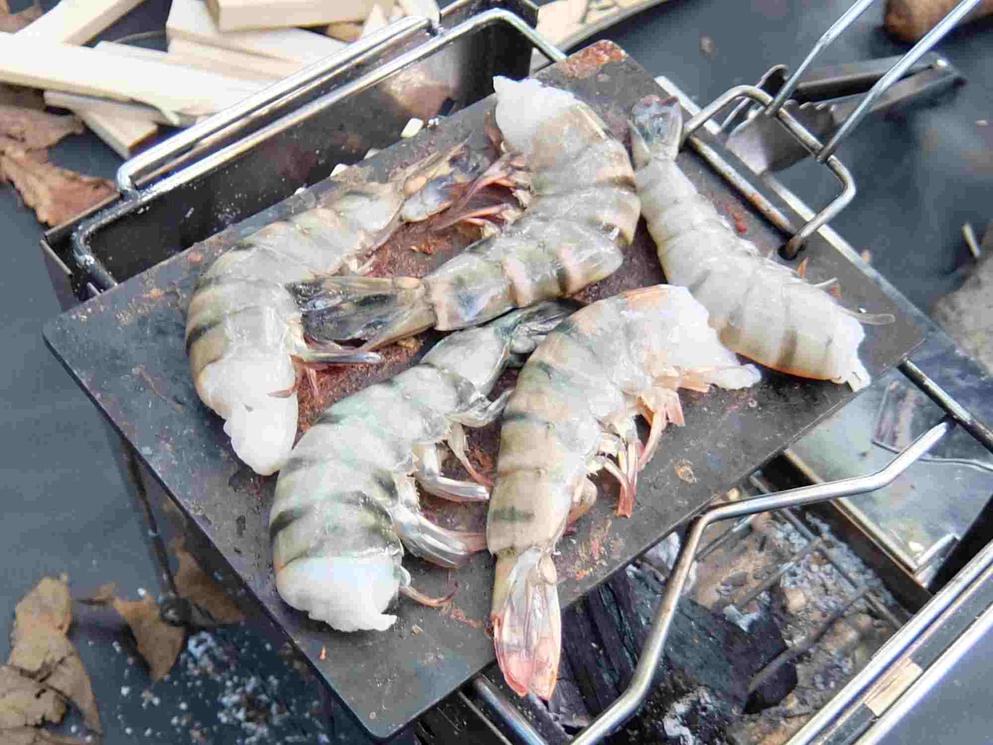 炭を熾してイカと海老を焼いてくれました。 ということで、夕刻から酒宴のはじまり