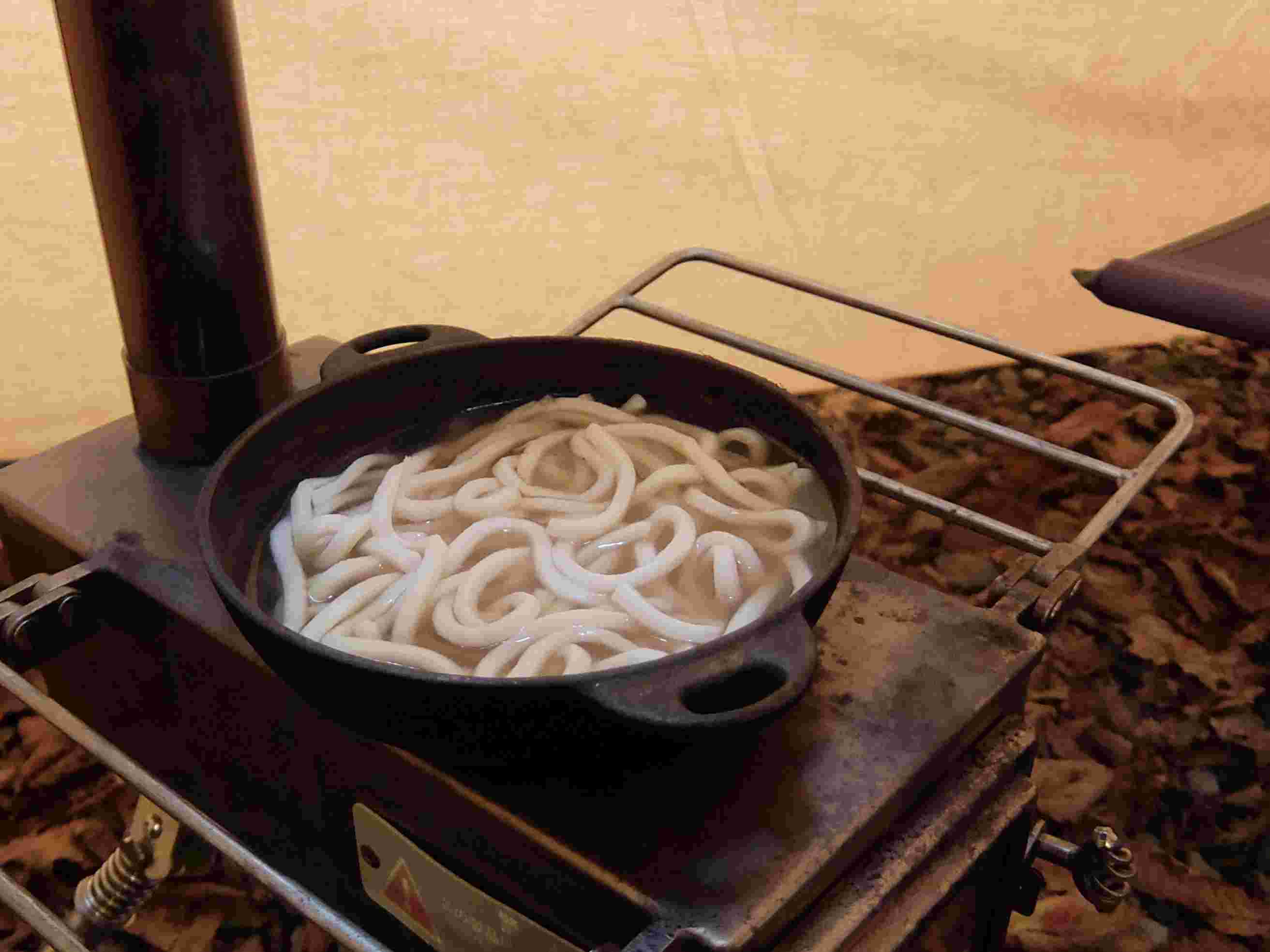 昨夜のおでんの残り汁に醤油を足して味を整えた”うどん”と