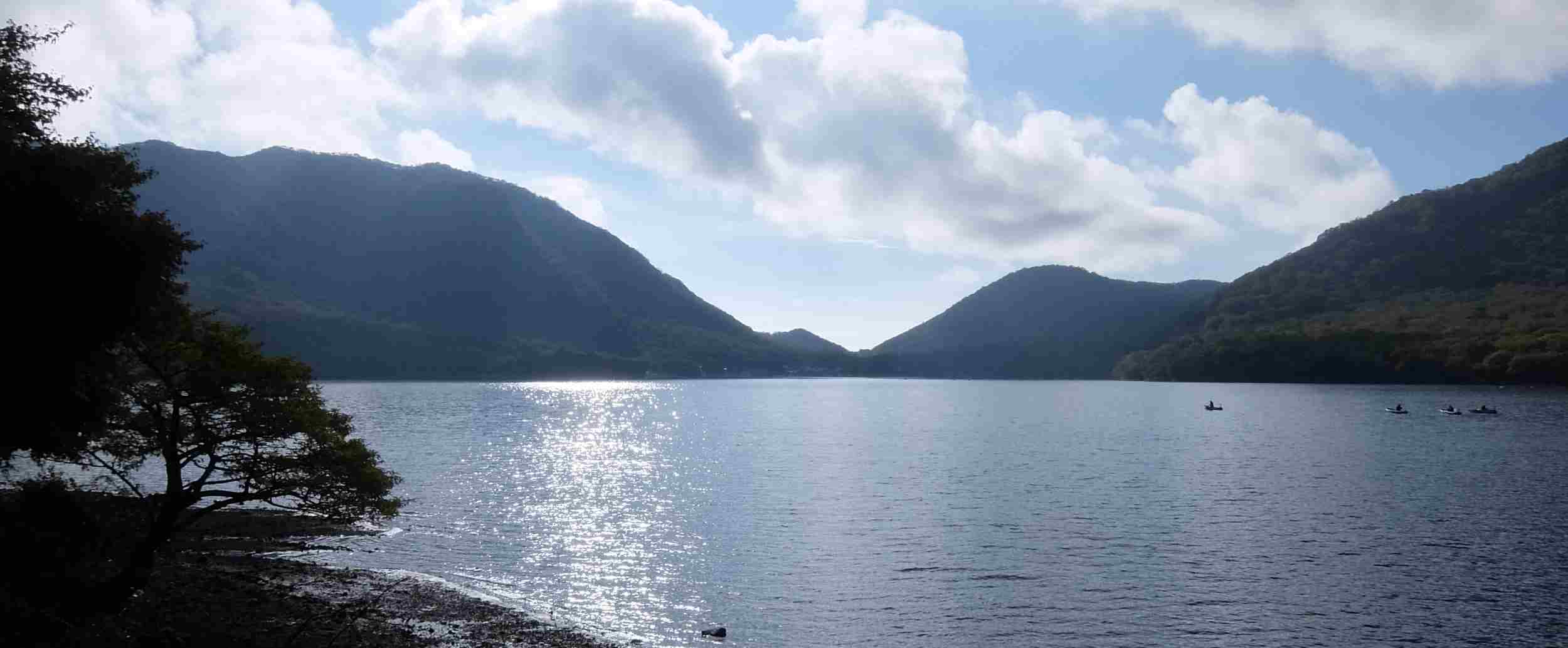 湖畔には早朝からわかさぎ釣りのボートが出ています。