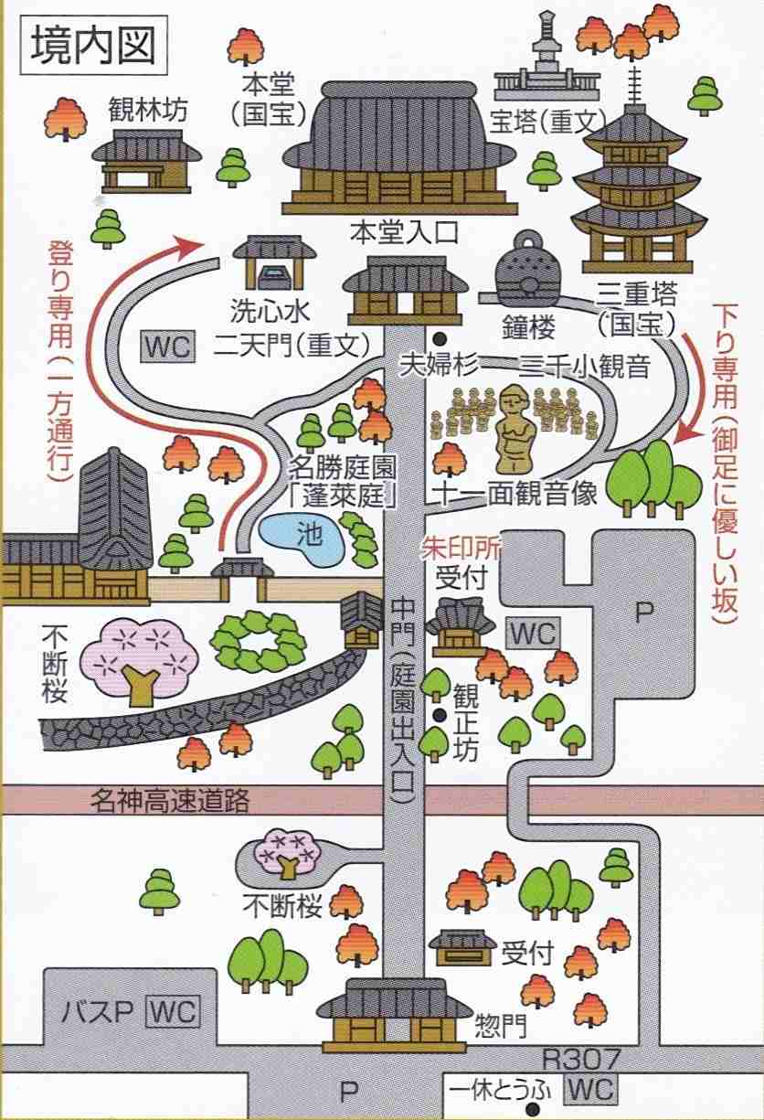 右側の自動車道を通って地蔵堂近くで降りて本堂に向かったのですが