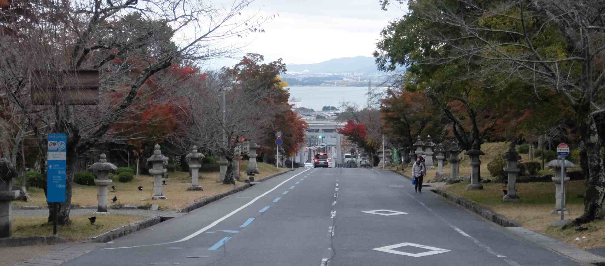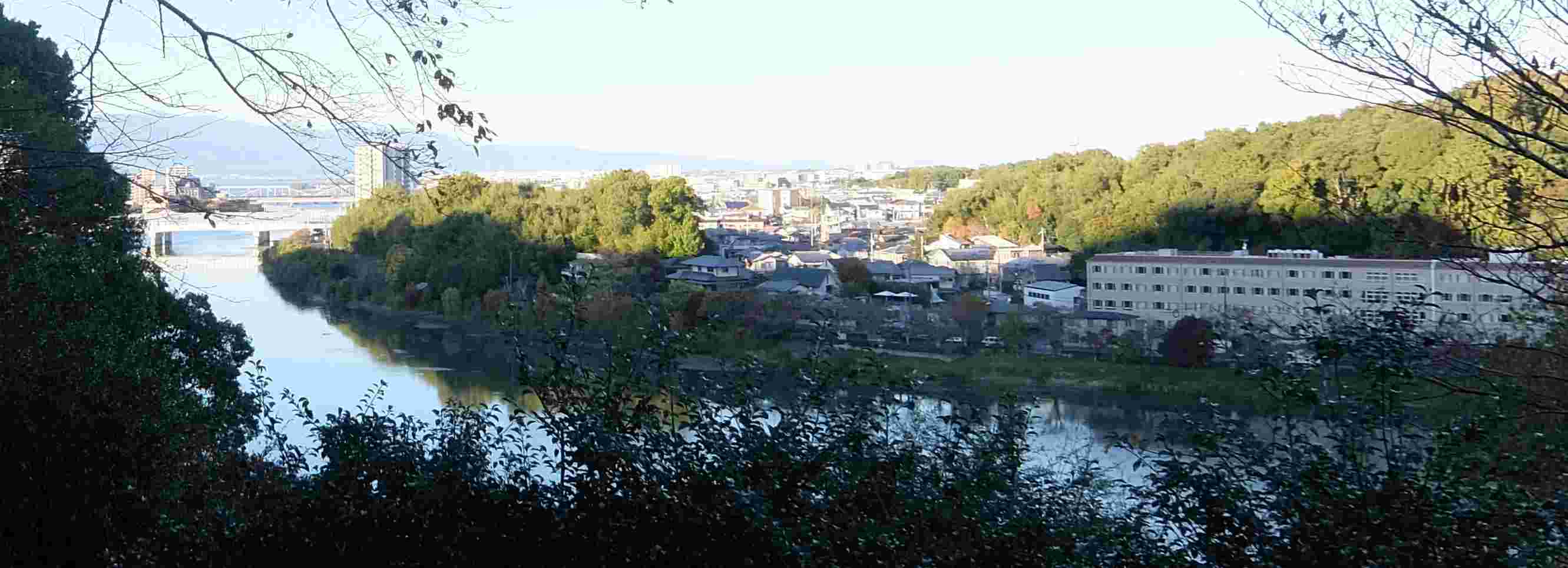 月見亭あたりからかすかに見える琵琶湖