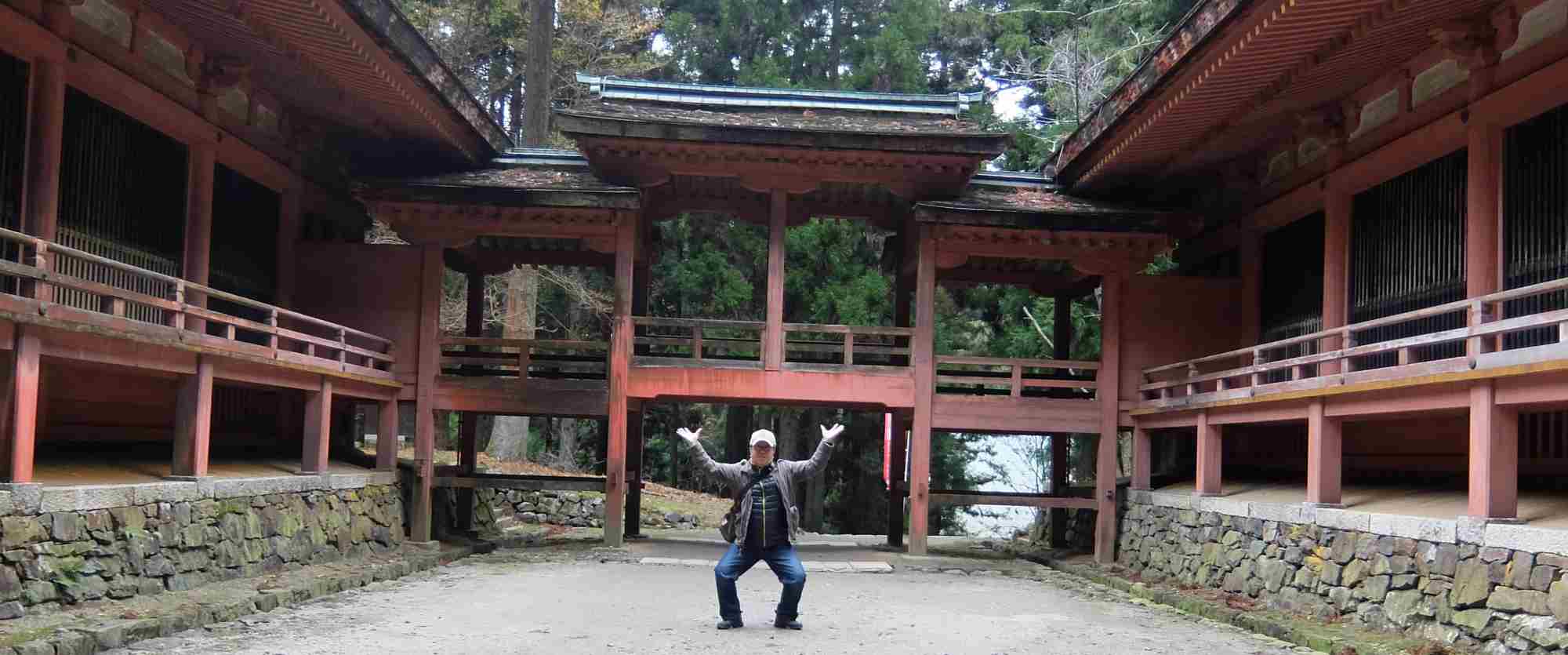 弁慶が両堂をつなぐ廊下に肩を入れて担ったとの言い伝えから、真似してみました。