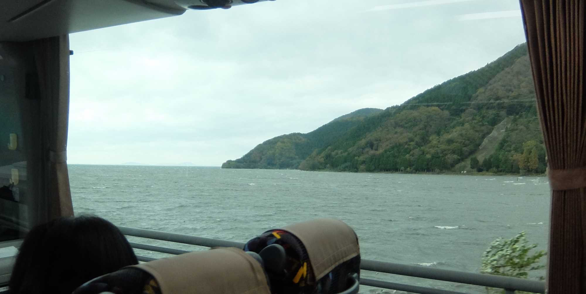 バスの車窓から琵琶湖の北端を