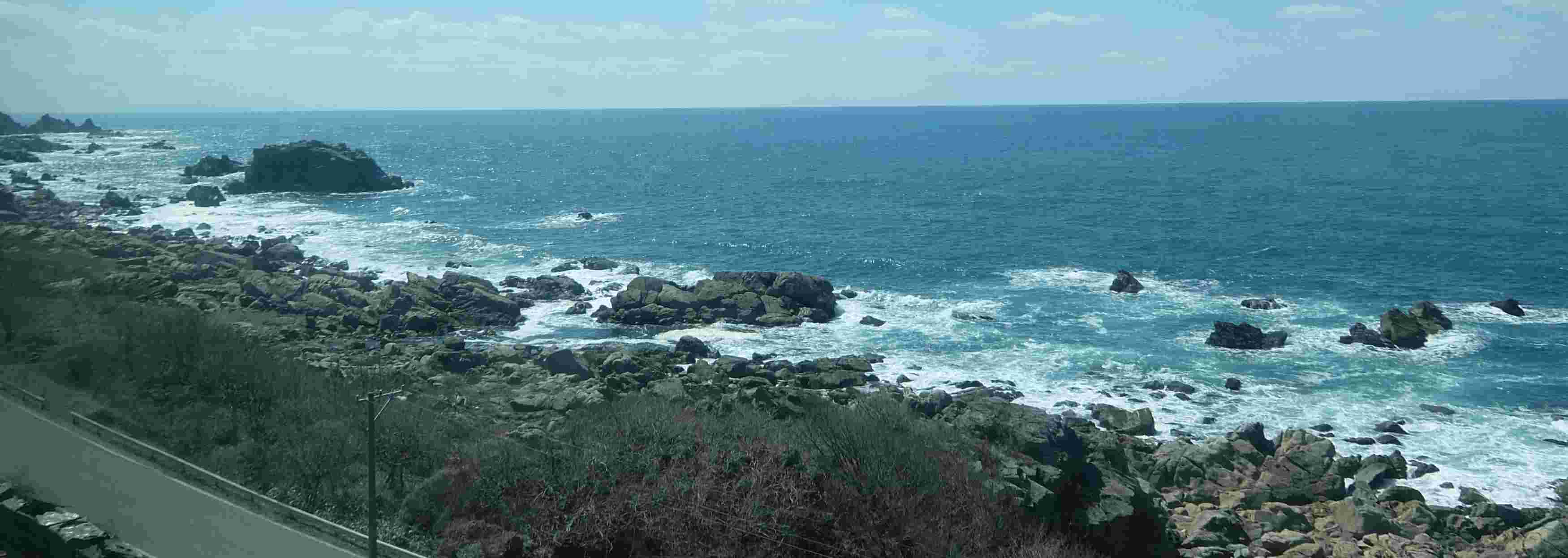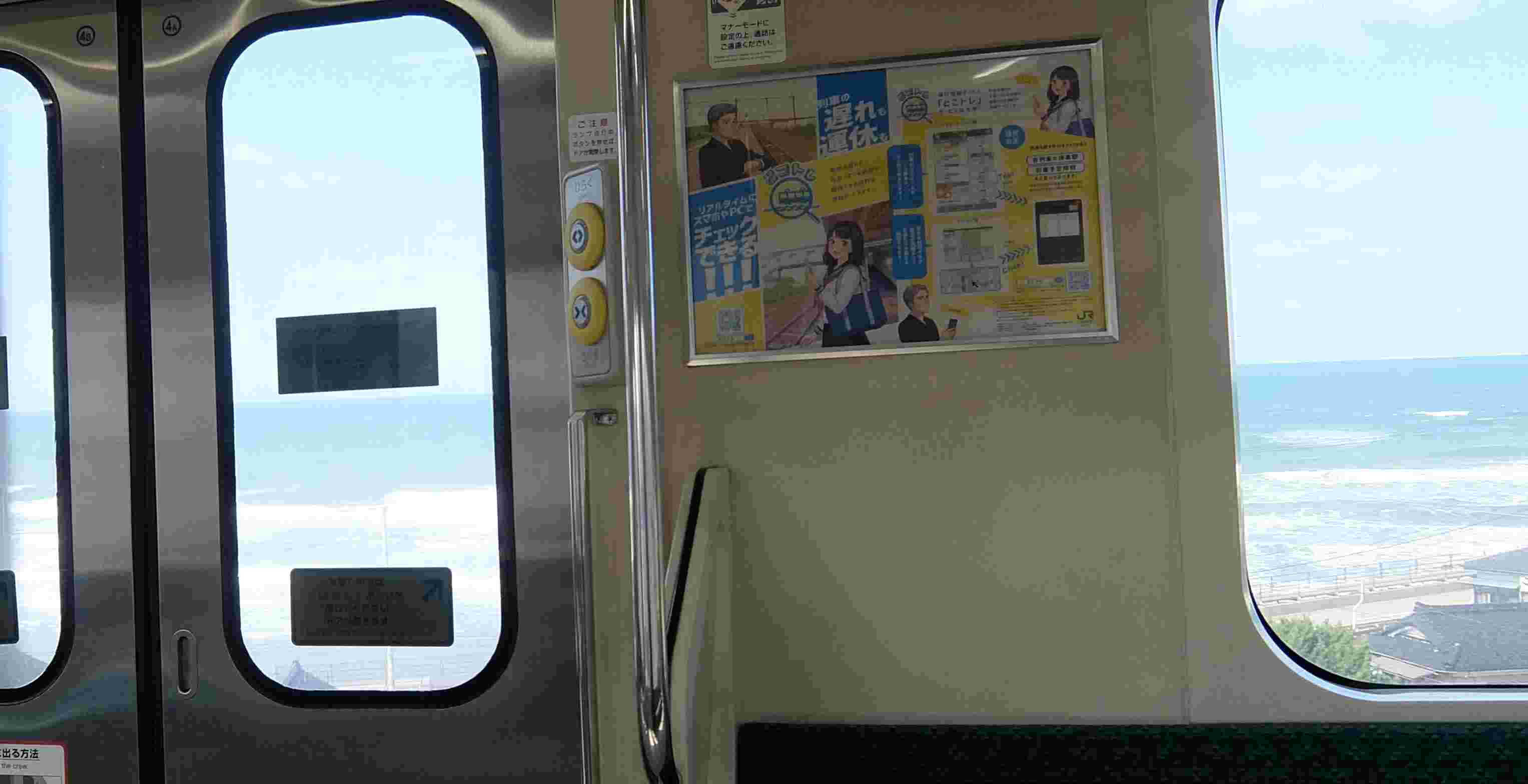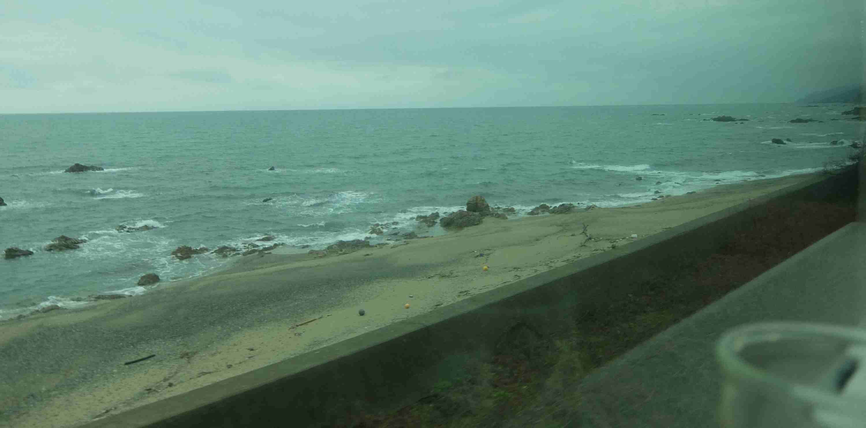 線路を見たり、左手車窓からの海を見たり