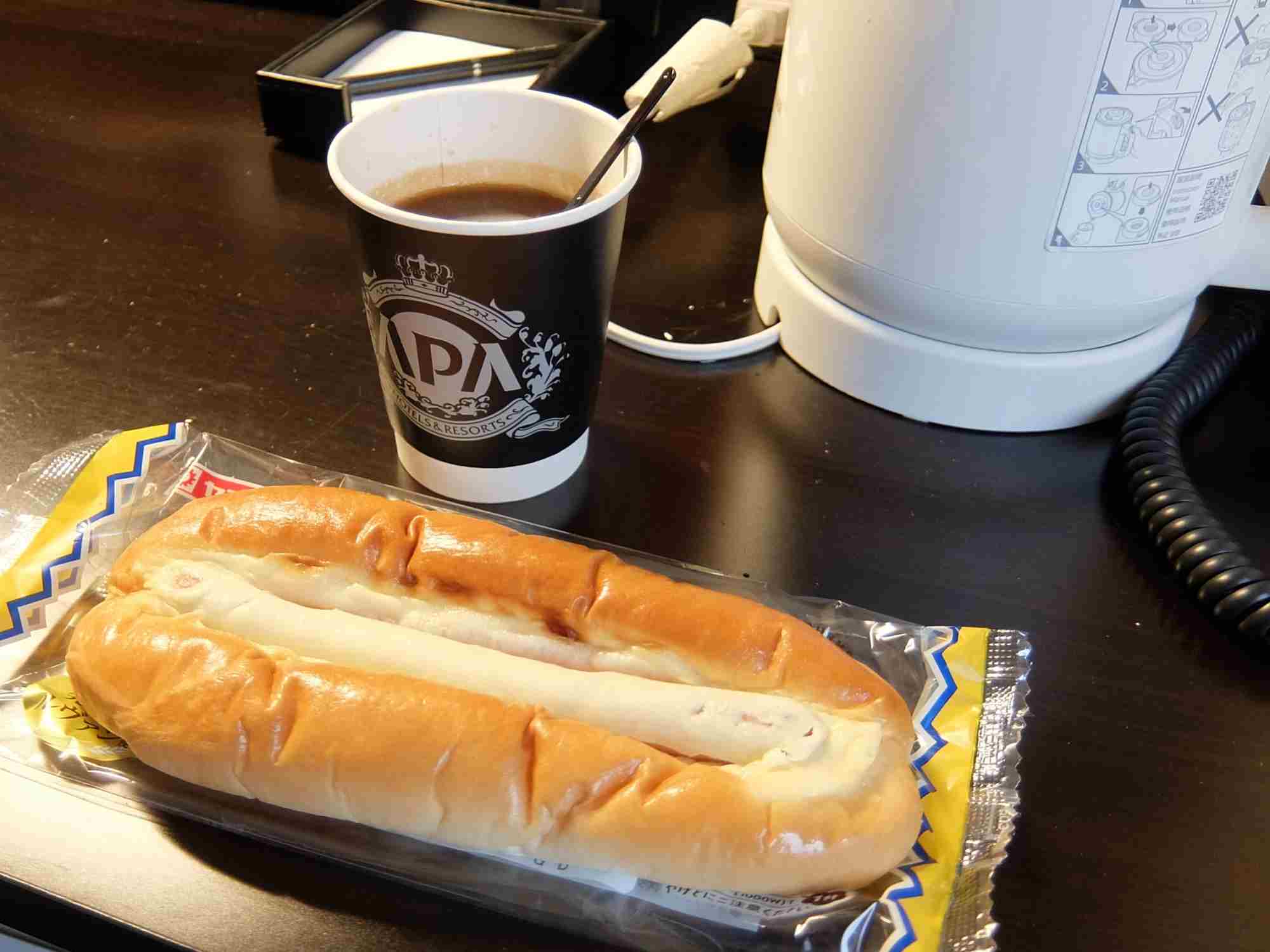 朝食は、昨日買っておいたパンと部屋のコーヒー