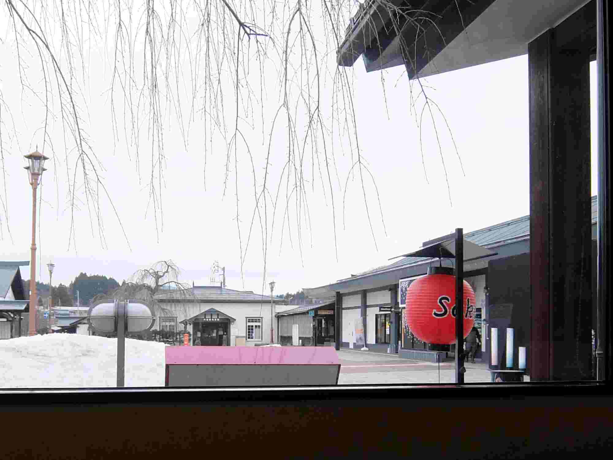 私の座ったテーブルからは駅前が丸見えです。