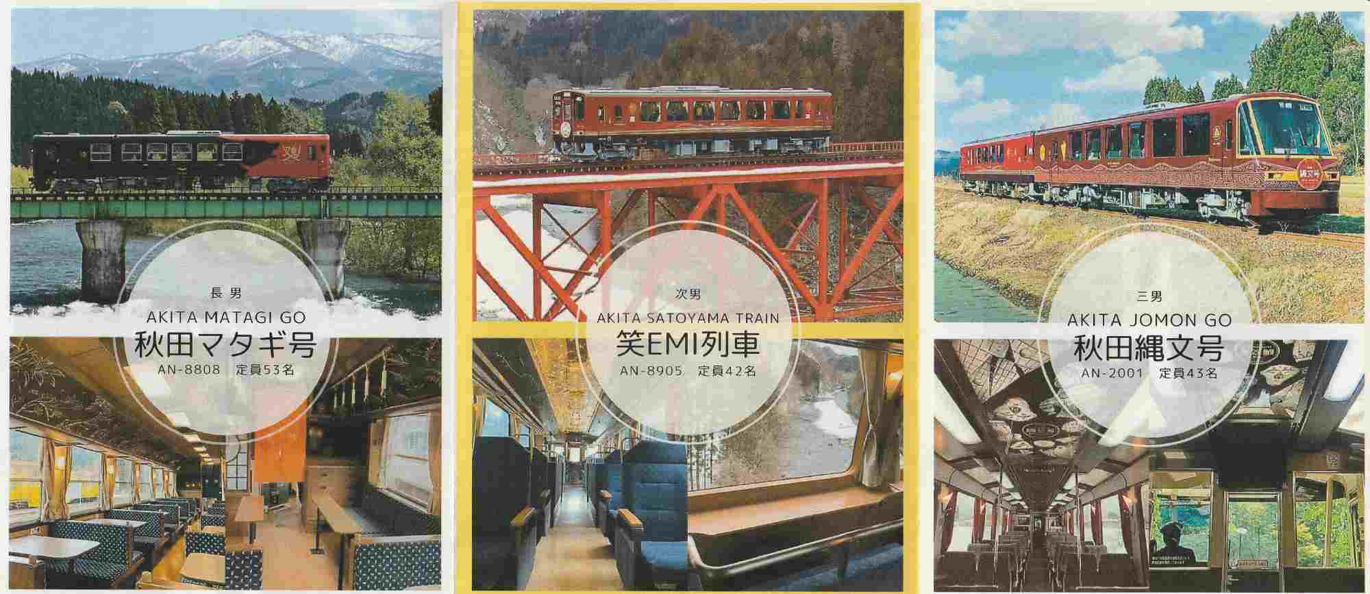 鶴岡 9:02 → 酒田 9:33/9:44 → 秋田 11:36/11:49 → 大曲 12:41/14:55 → 角館 15:14