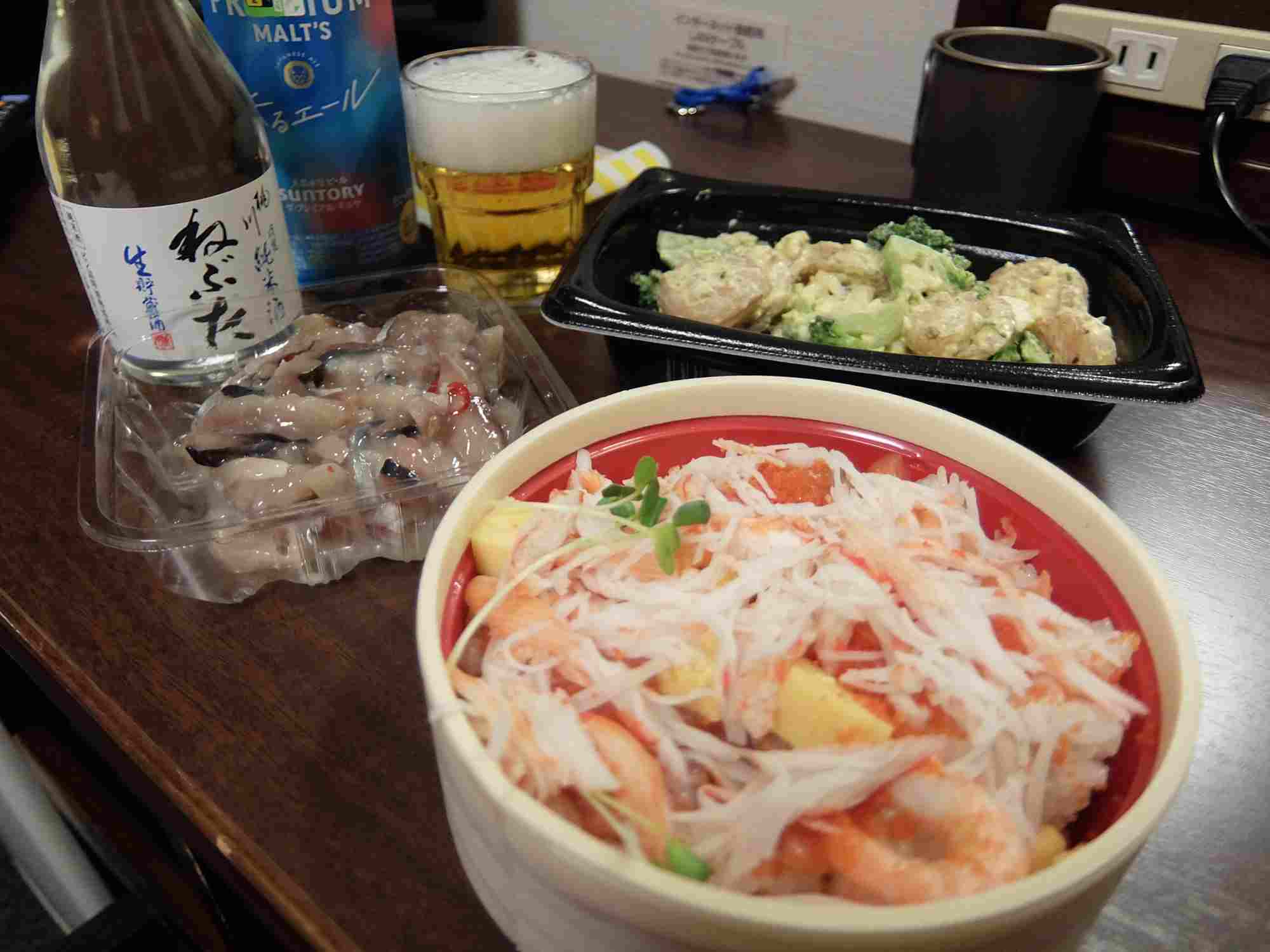 近くのスーパーで買い込んできた惣菜とお弁当をいただいて 「おやすみ」