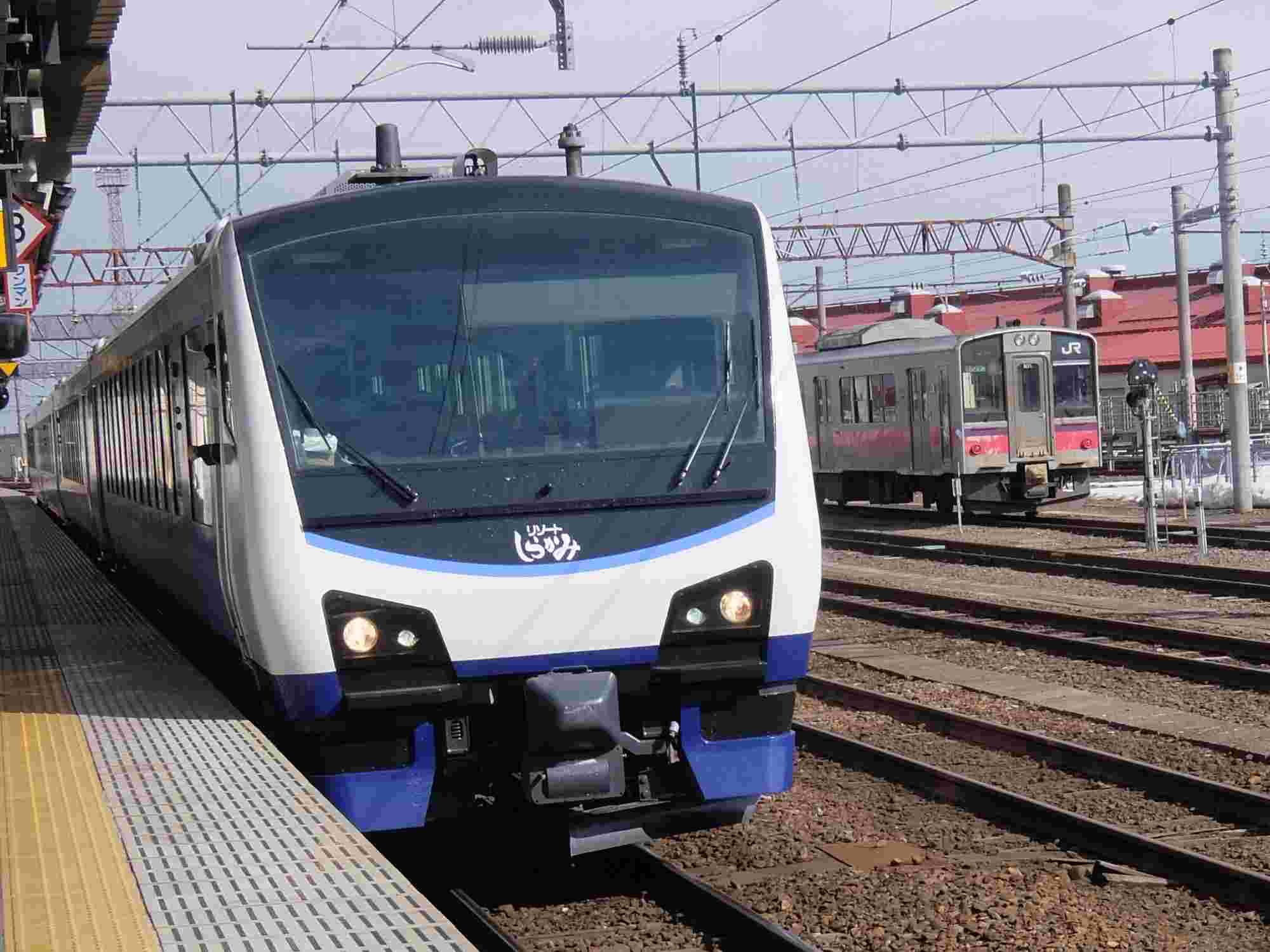 村上で秋田に行く特急”いなほ”をお見送り