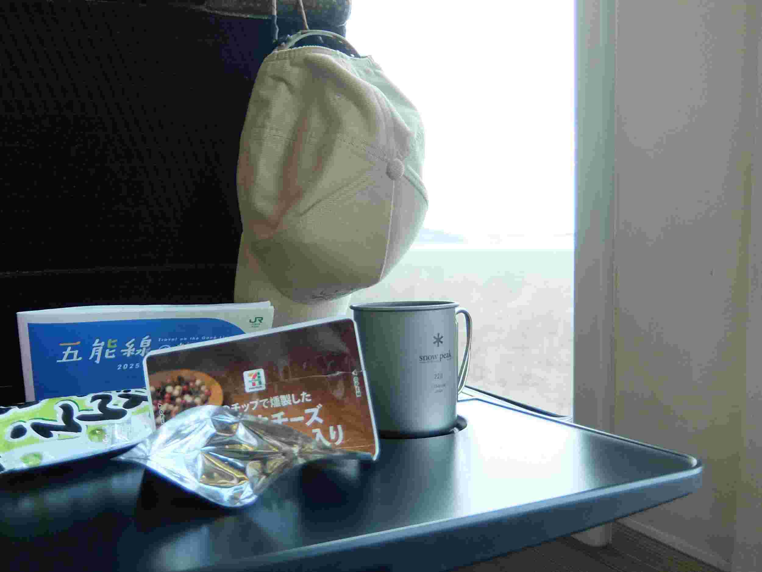 村上からの乗車で村上駅で買った鱒寿司と〆張鶴という”おいしいお水(?)”で昼食