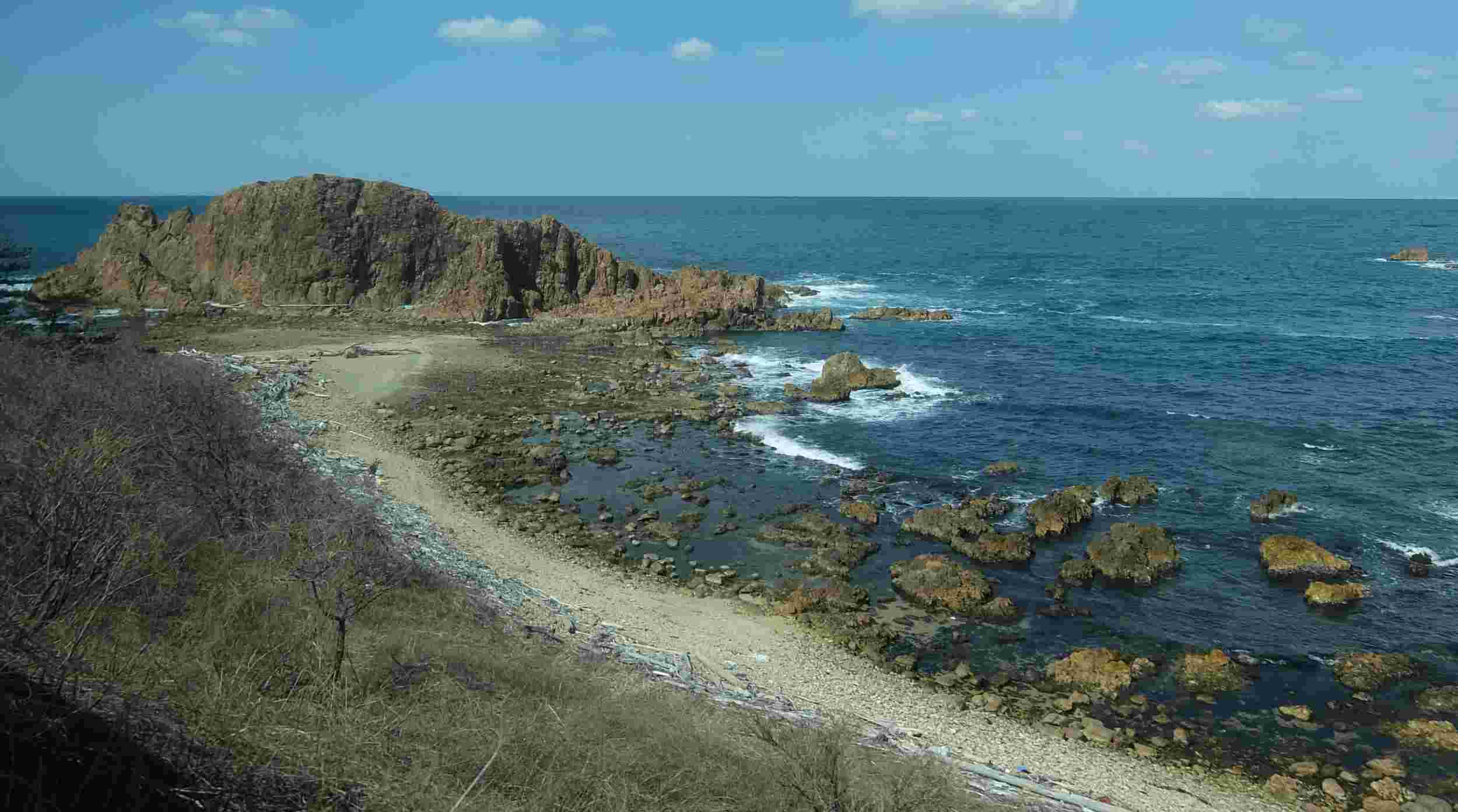 瀬波海岸を南下中 遠くに見えるのは粟島