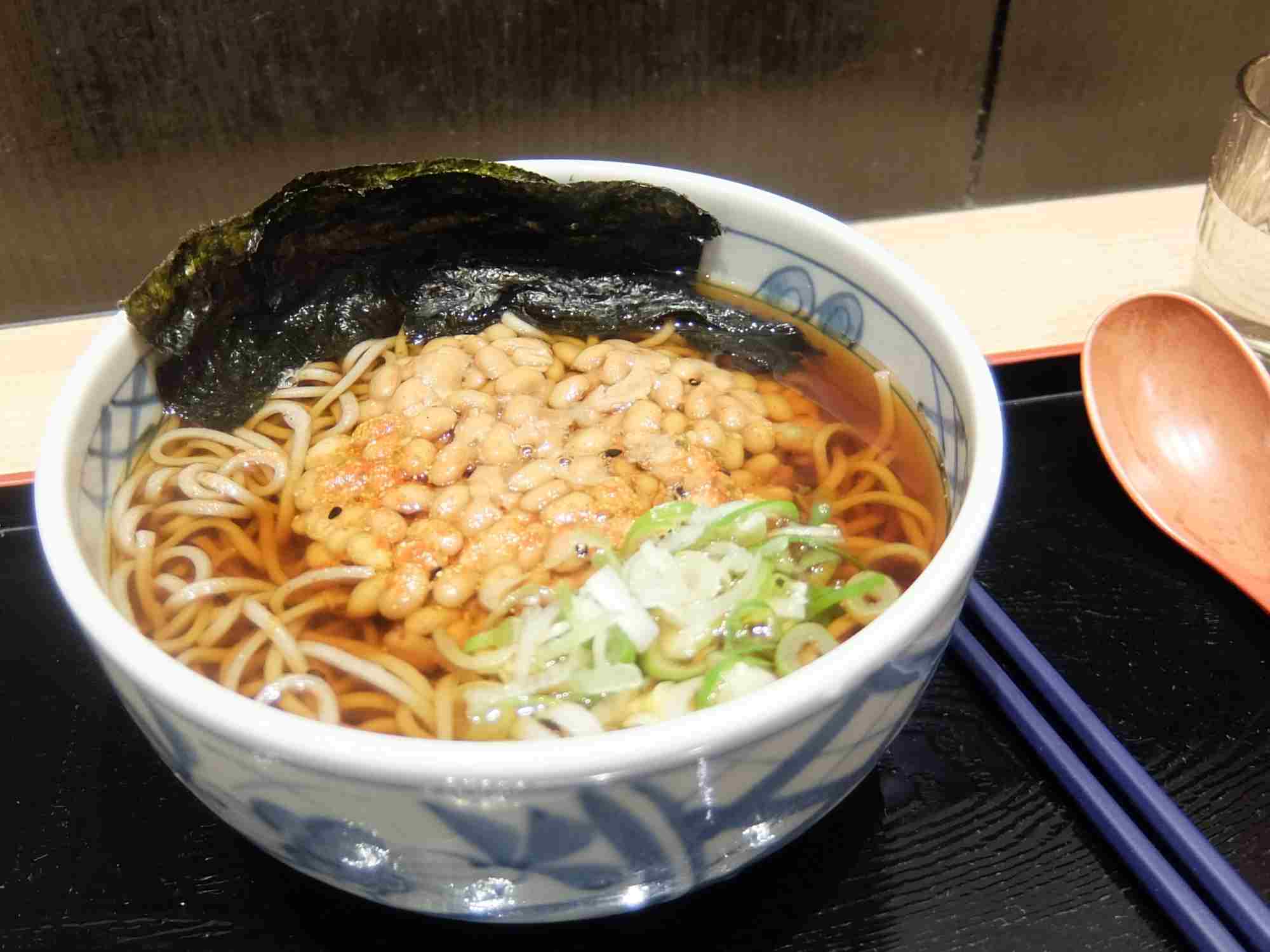普通に天ぷら蕎麦にしたかったのだけど、”なっとう蕎麦”にしてみた。