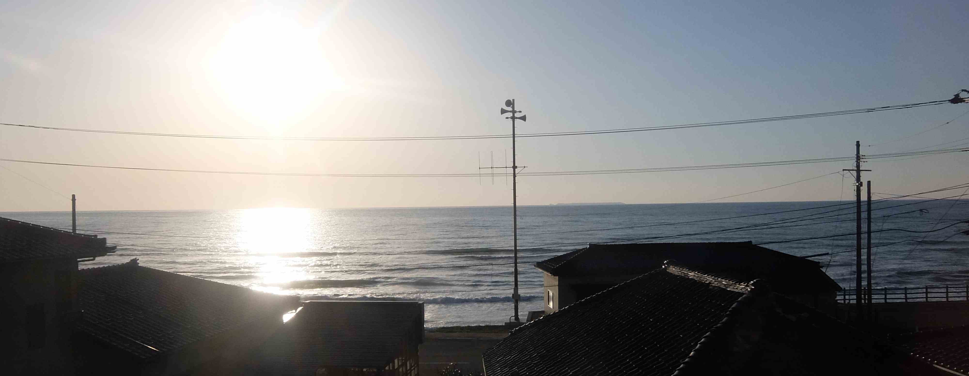 日本海に傾く太陽を見ながら酒田へ