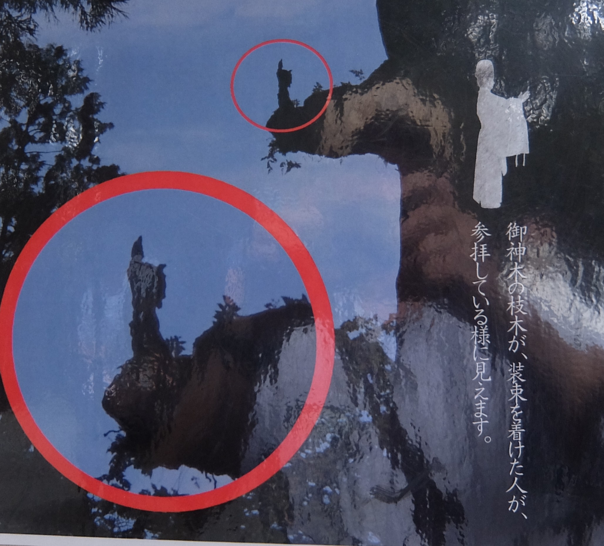 後ろに回って見ると、烏帽子をかぶった人が参拝をしているようにみえます。