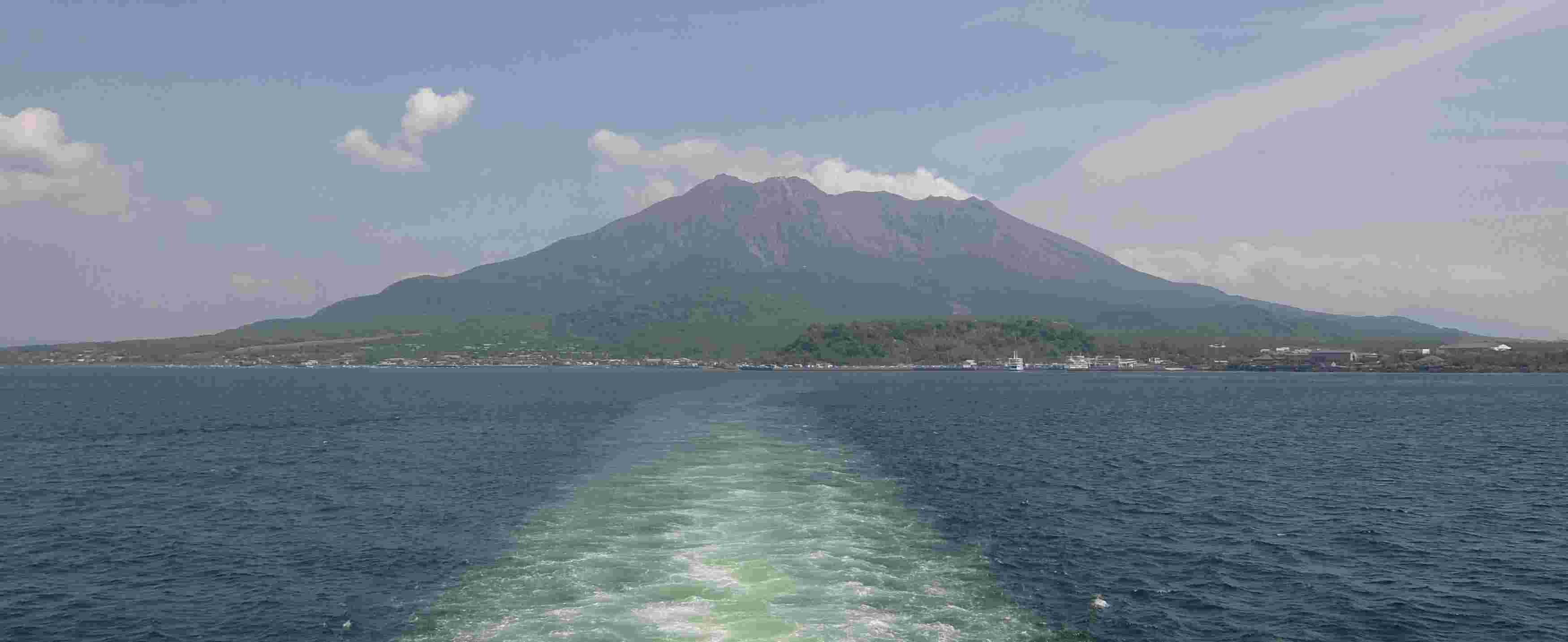 錦江湾の東沿岸をドライブし桜島へ(昔は島でしたが今は東側が半島とつながっています)