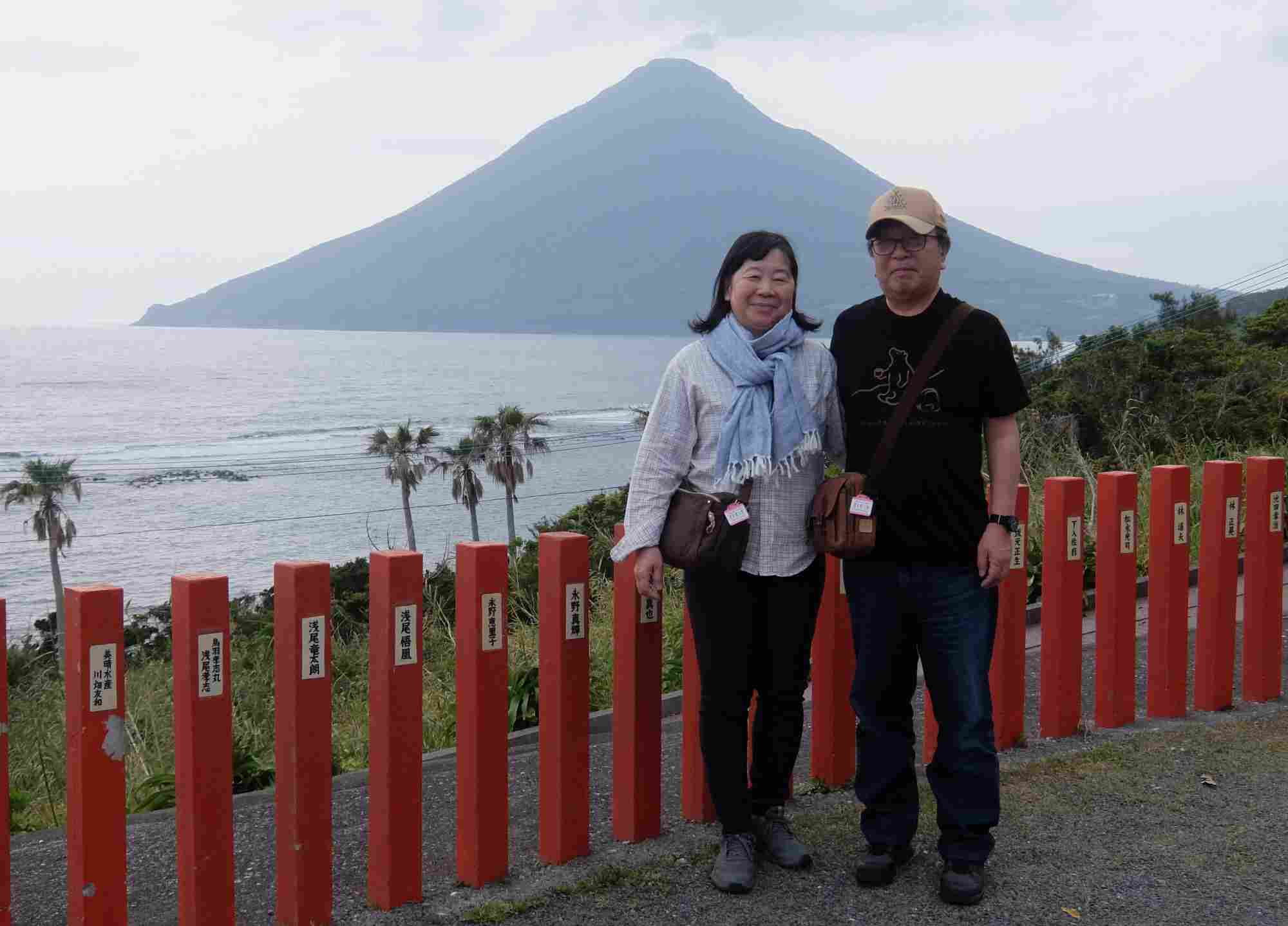 神社からは海に浮かぶ開聞岳が美しく見えました。