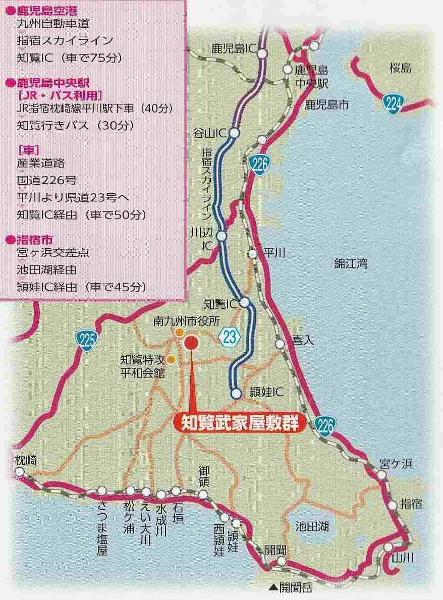 指宿温泉→西大山駅→釜蓋神社→知覧→指宿駅→<観光列車>→鹿児島中央駅→鹿児島空港