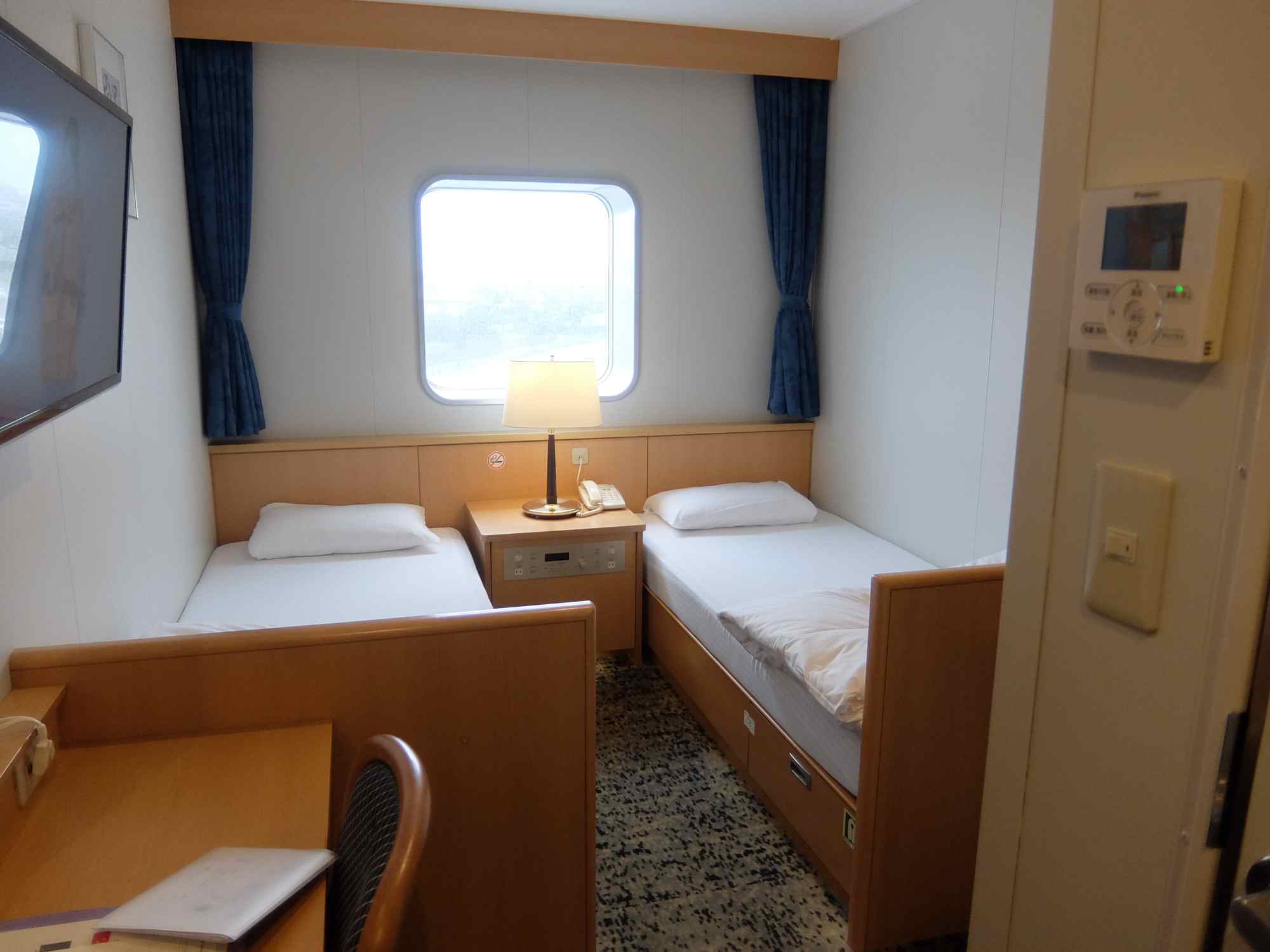 16時には船室へと入れました 船室は、来たときと同じ”ステートAツイン:アウトサイド”