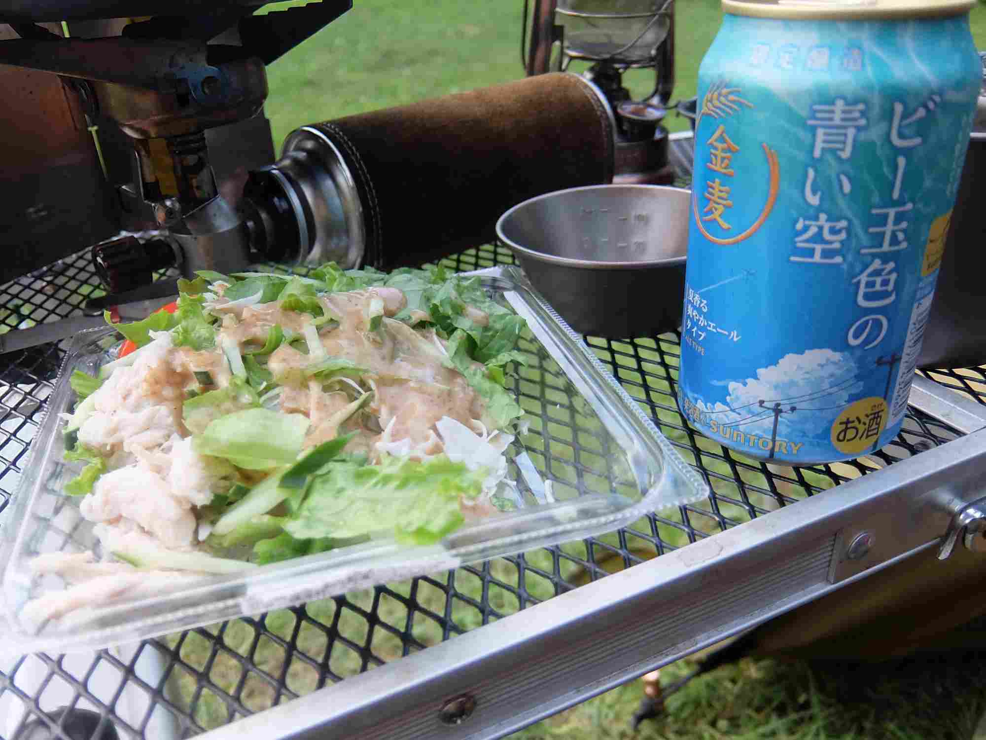 とりあえず、テーブルとイスを出してビールを開けて昼食