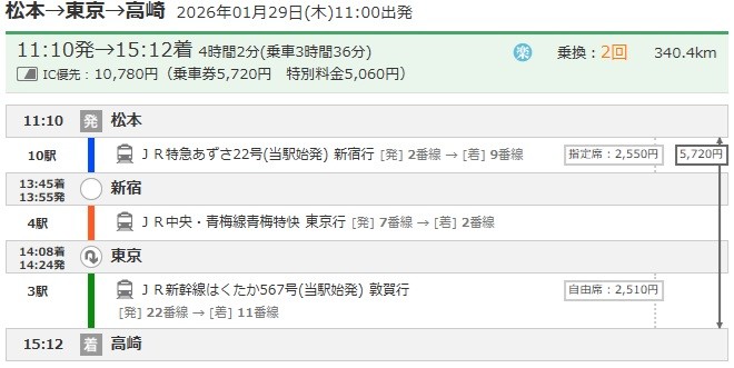 せっかくなので特急あずさで新宿に出て東京経由で帰りました。