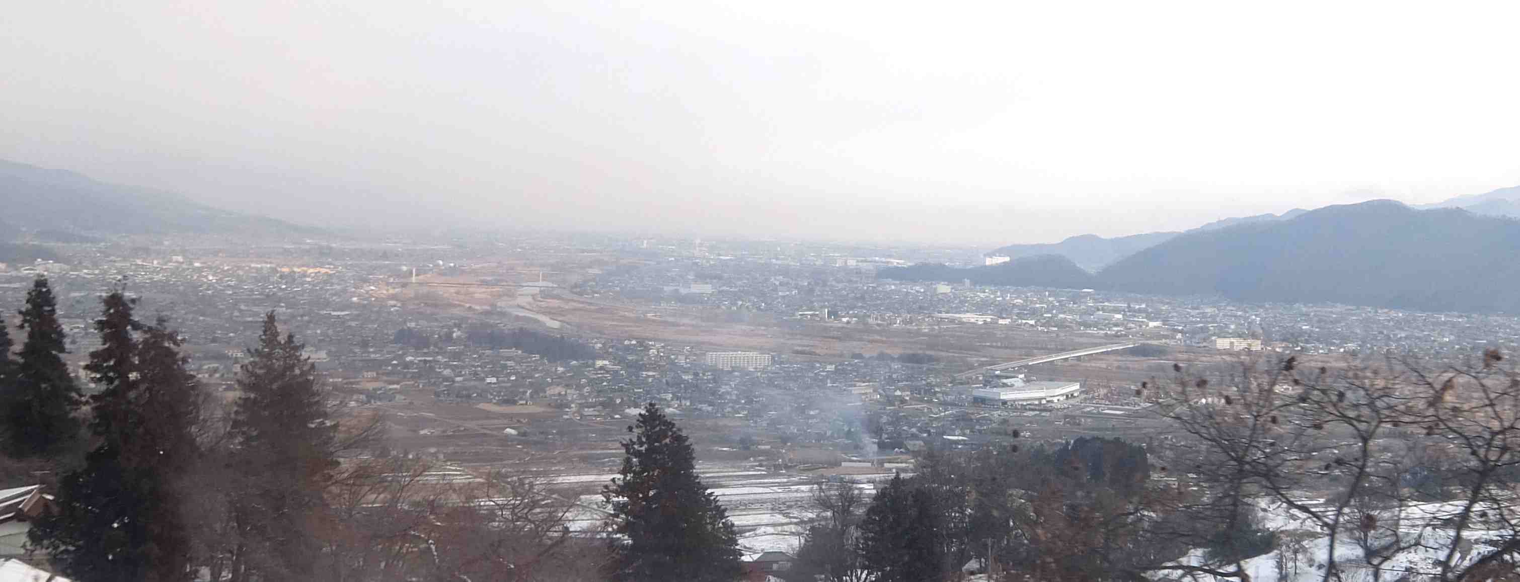 長野で特急しなのに乗換えて、姨捨からの景色(晴れていれば素晴らしい景色です)