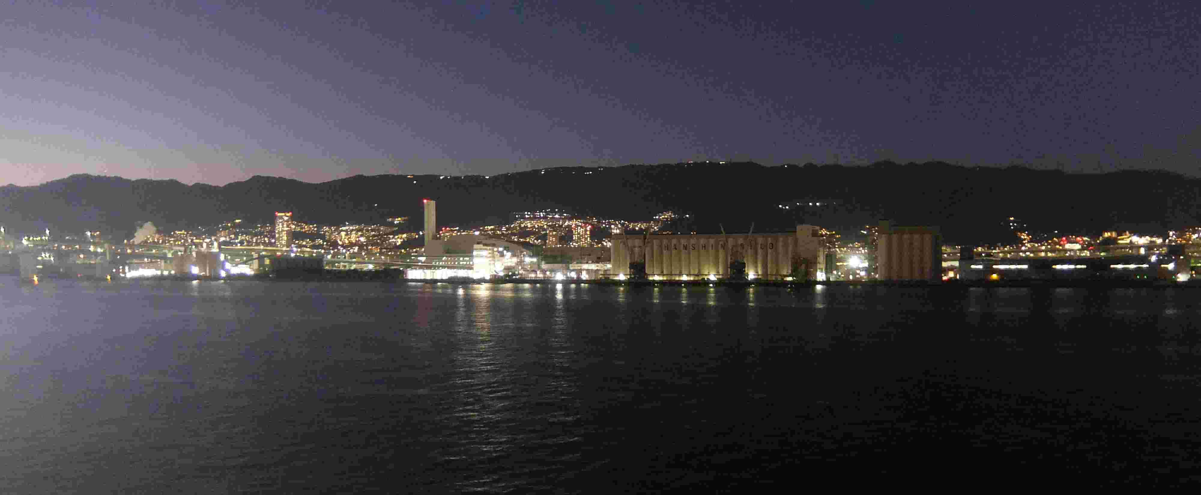 神戸の夜景(神戸の街は船室とは反対側なのでデッキで眺めた)