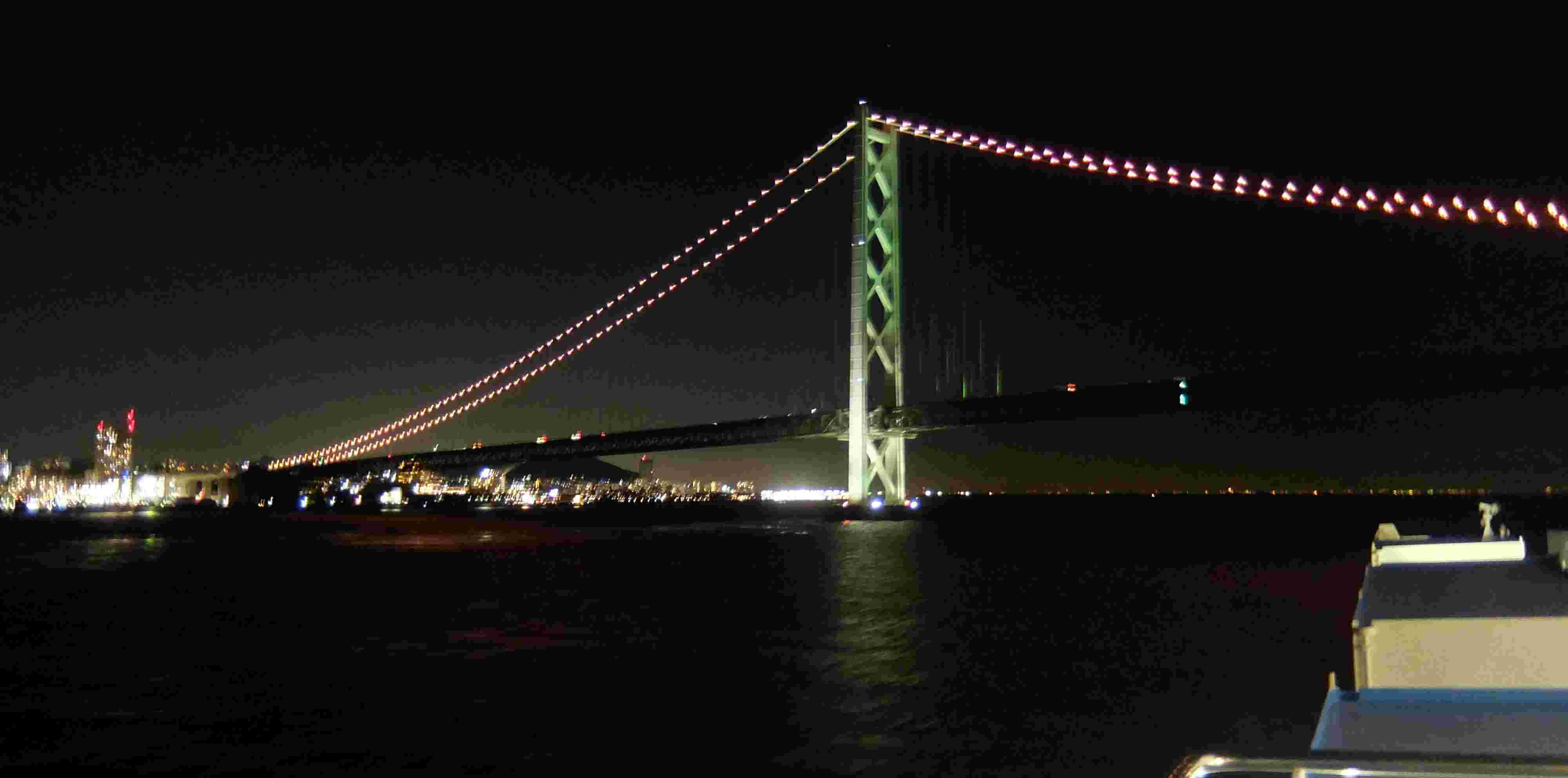19:30頃 明石海峡大橋を通過 あっという間の通過でした。