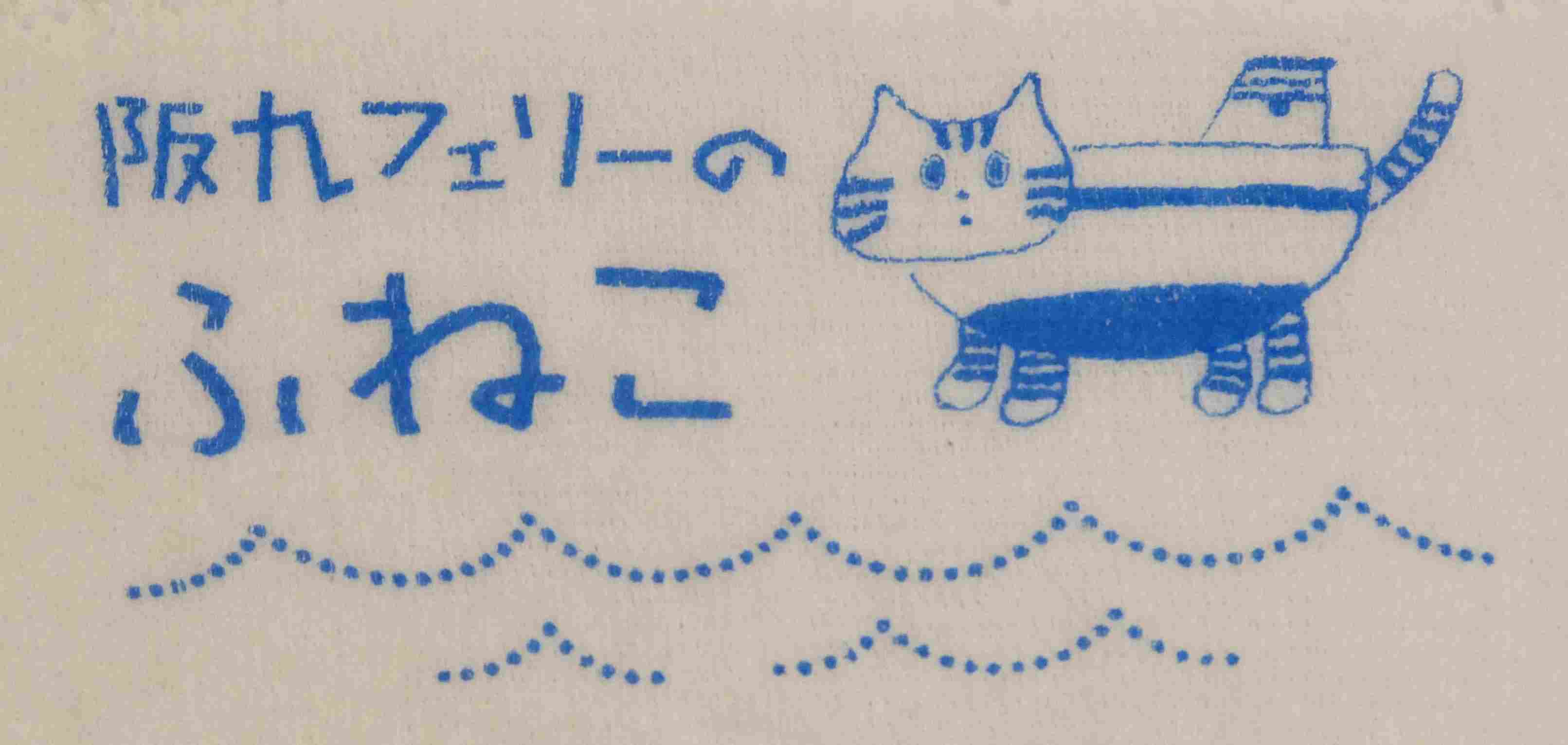部屋にあった手ぬぐいには阪九フェリーのキャラクター「ふねこ」の絵柄