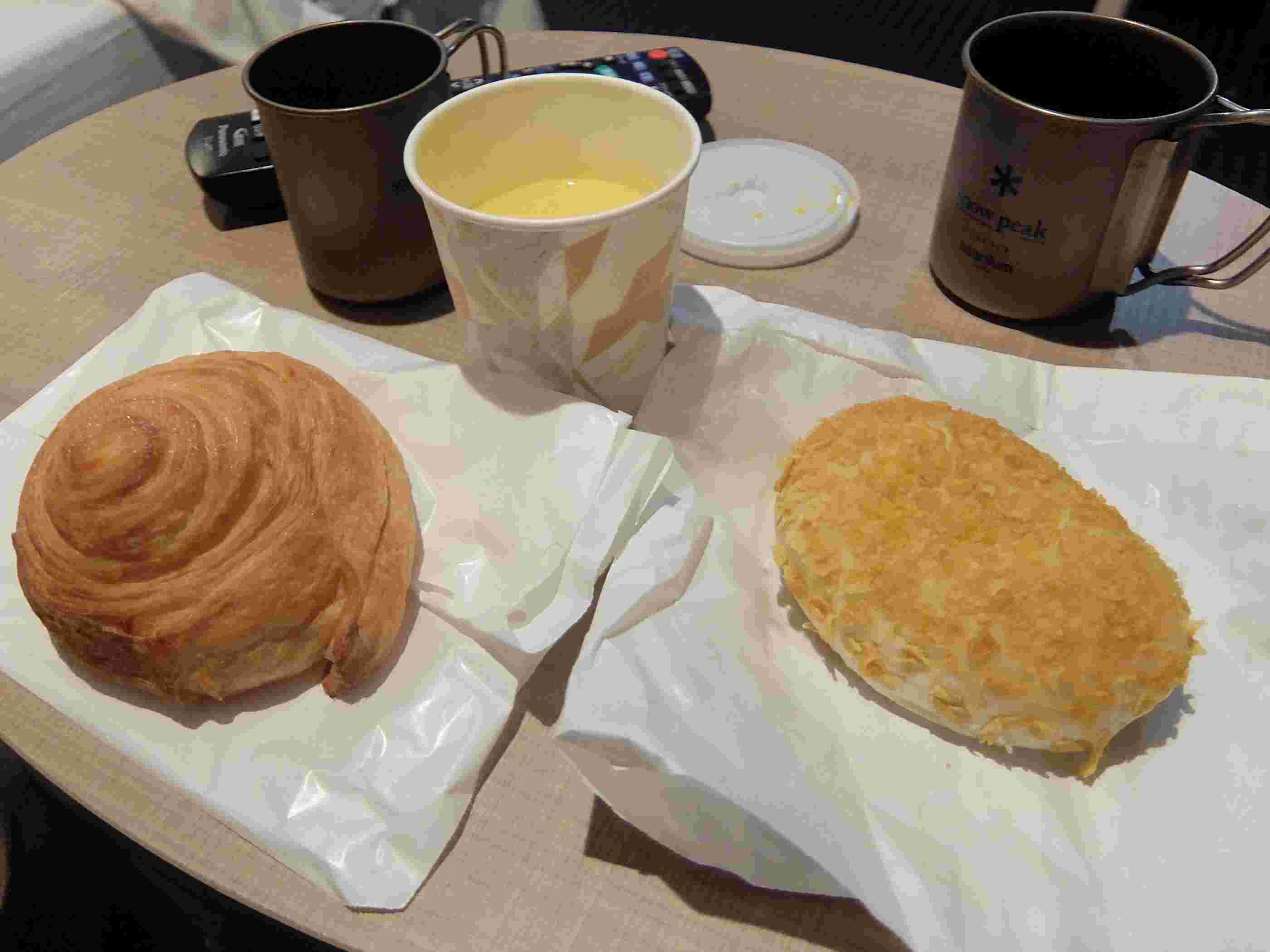前日に注文しておいたパンとスープを部屋でいただきました。