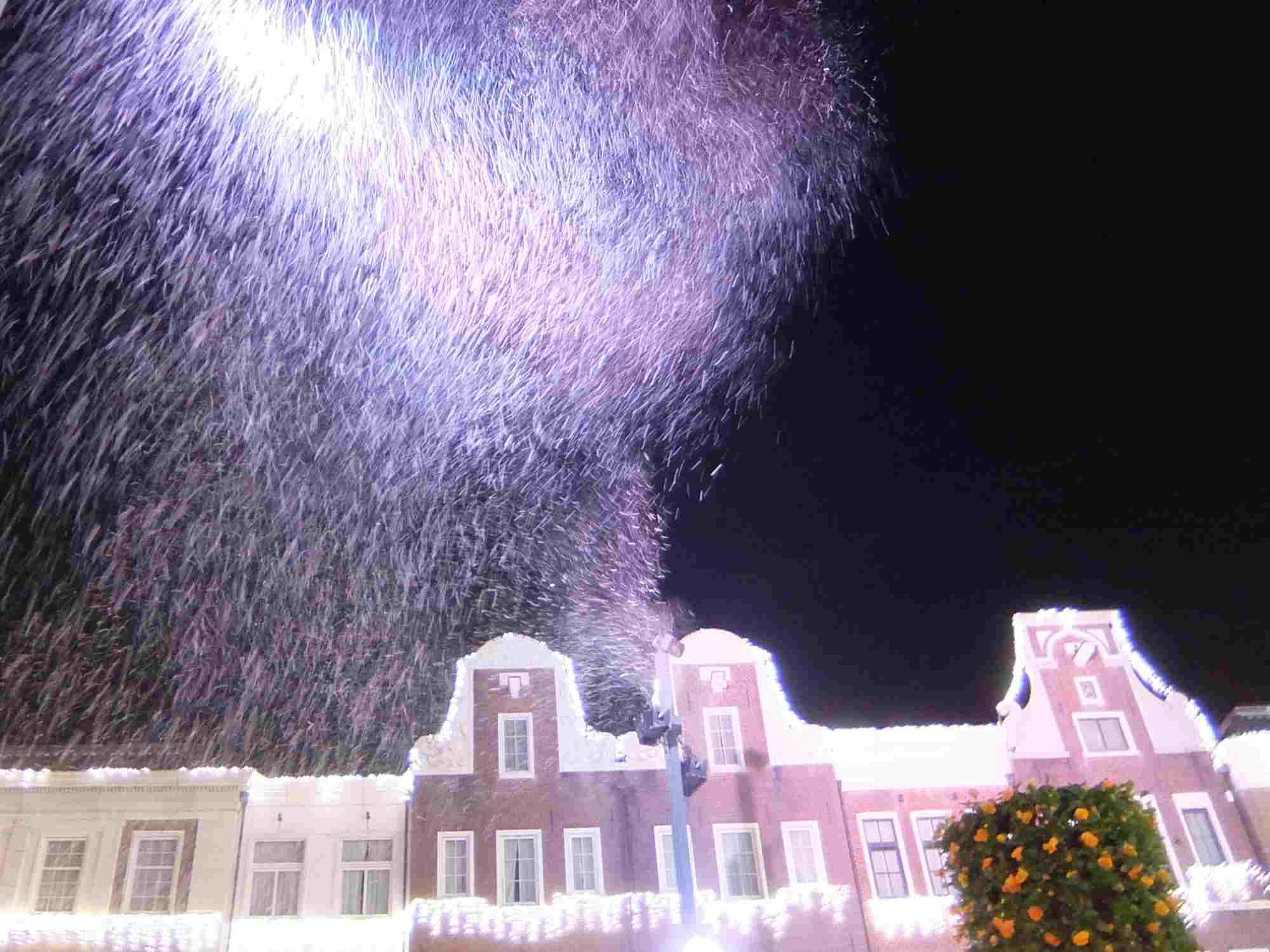 途中、会場に雪が舞い